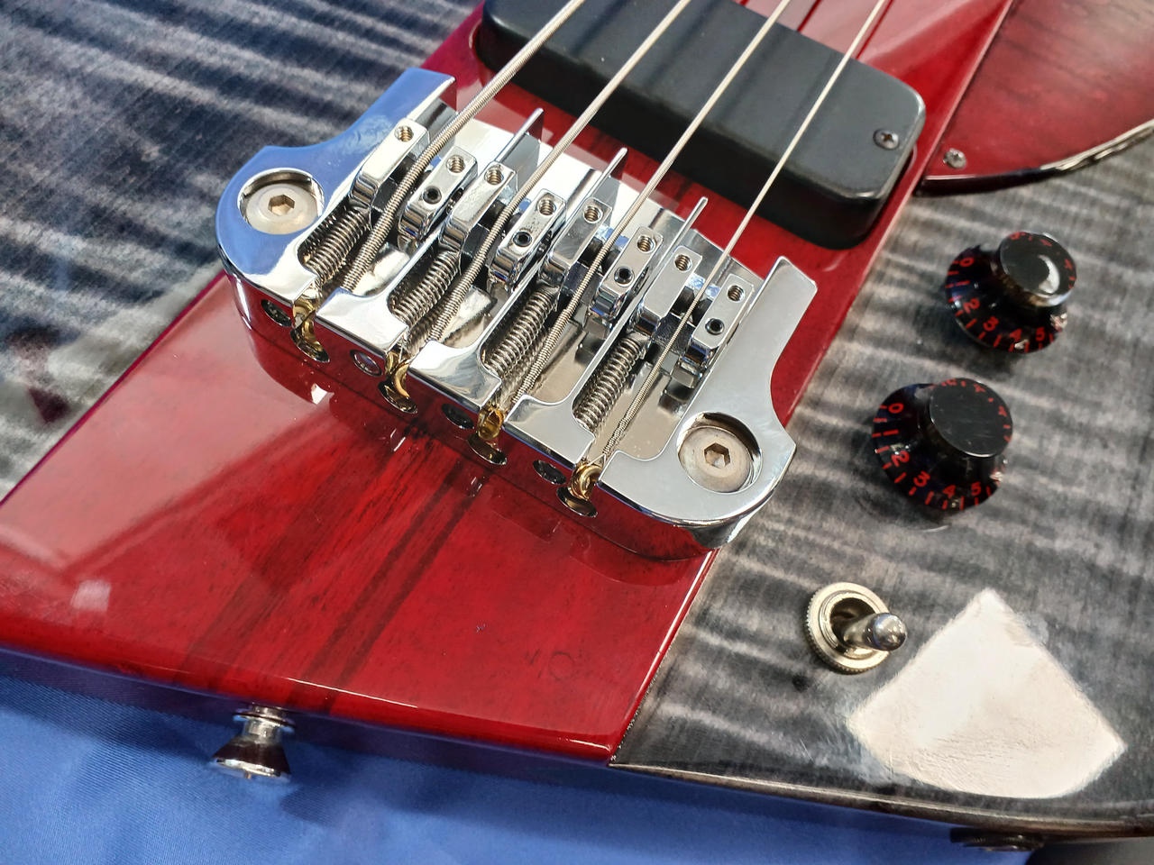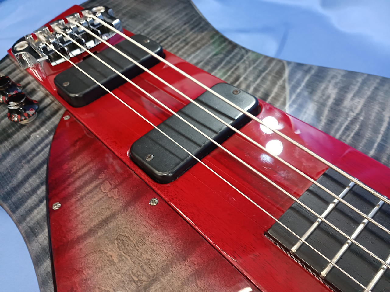 オンオフスイッチつきでなかなか癖が強いベースですがパワフルなサウンドでピック弾きは特におすすめです! |