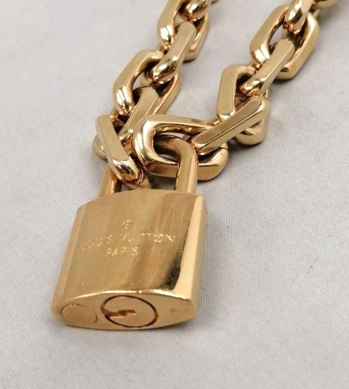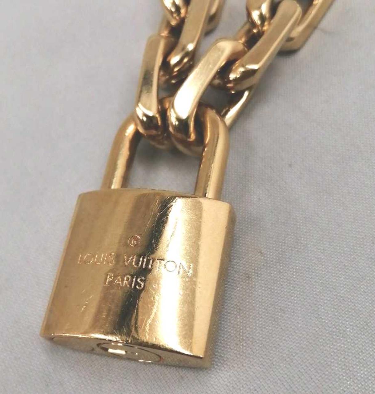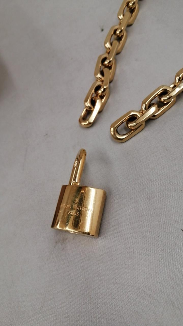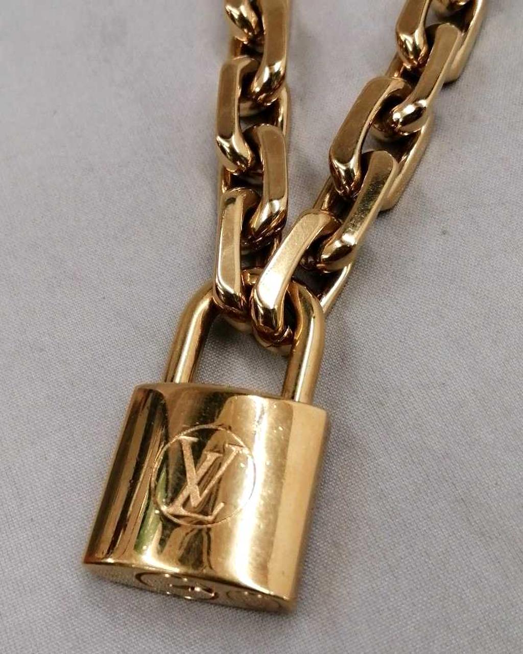 LV イニシャルの刻印を施した大ぶりのパドロックが揺れるデザイン |
