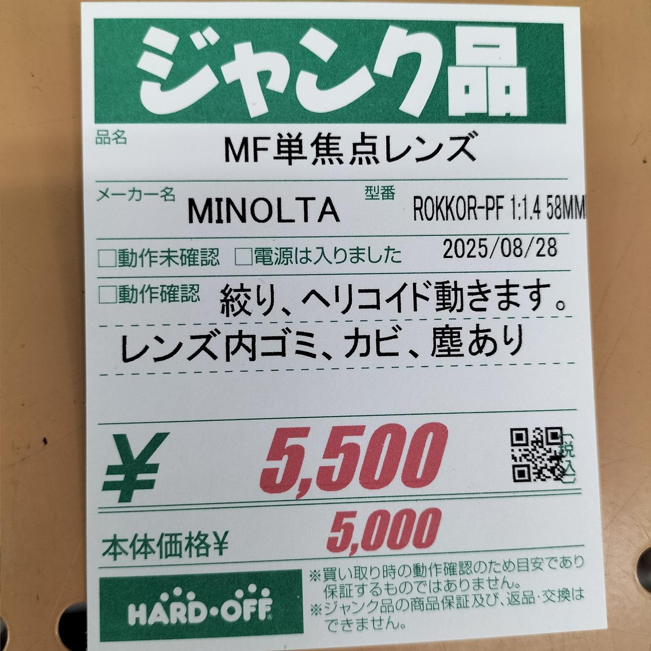 型番:ROKKOR-PF 1:1.4 58MM