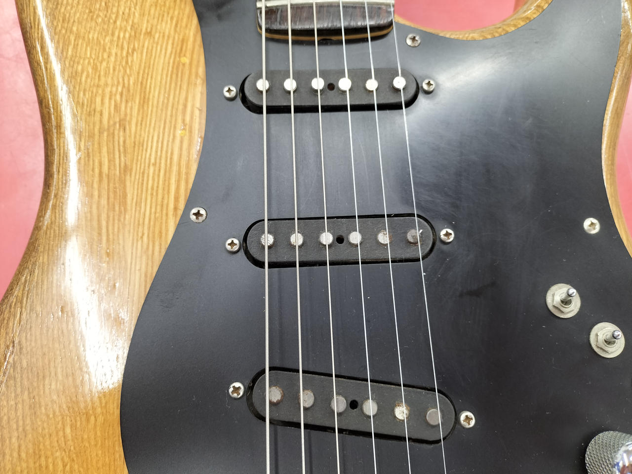 ブラックピックガードの洗練されたルックス、3つのミニスイッチという独特の仕様 1ボリューム、1トーンで設定が無限大の多彩なサウンドを繰り出します! |
