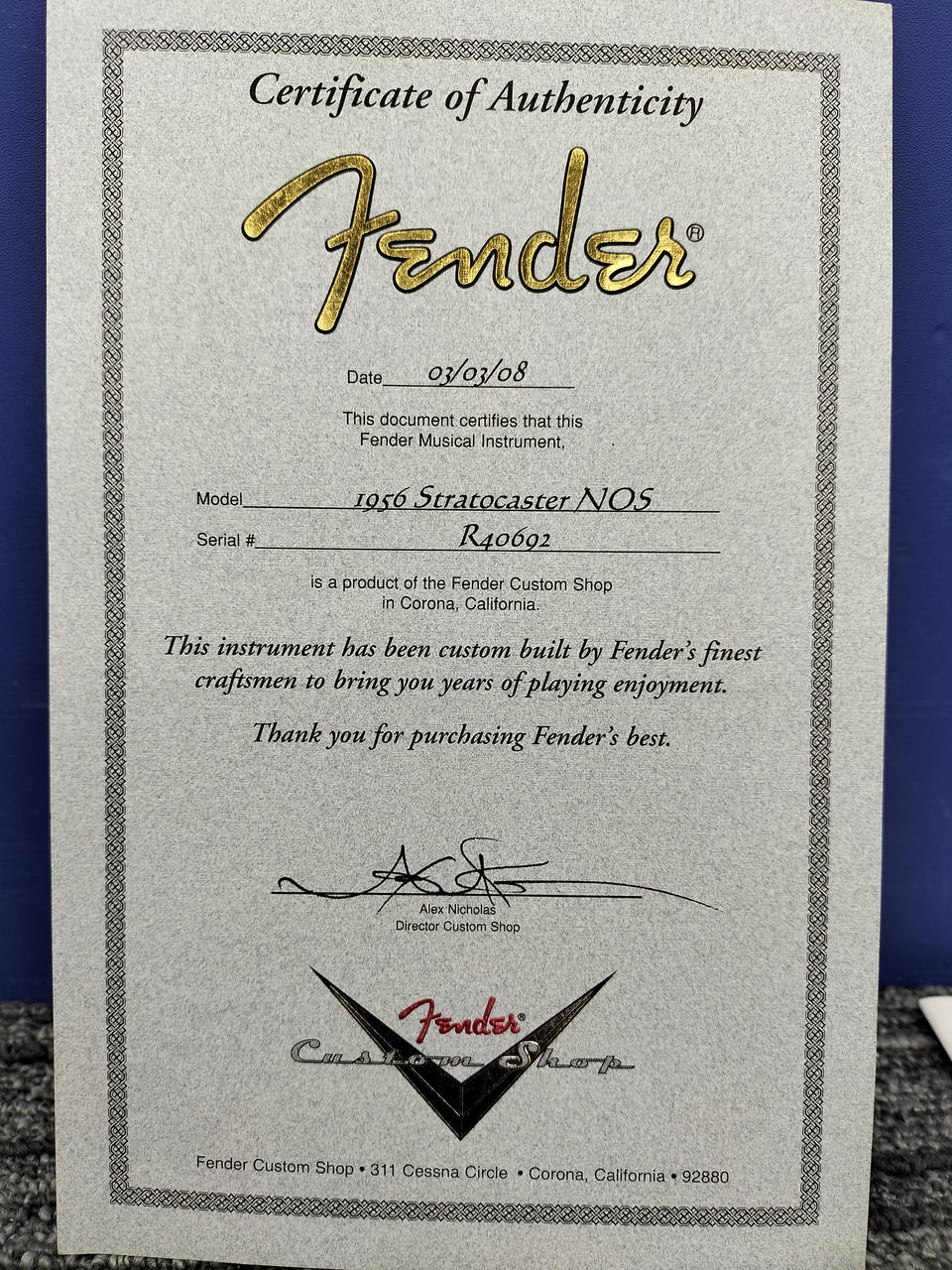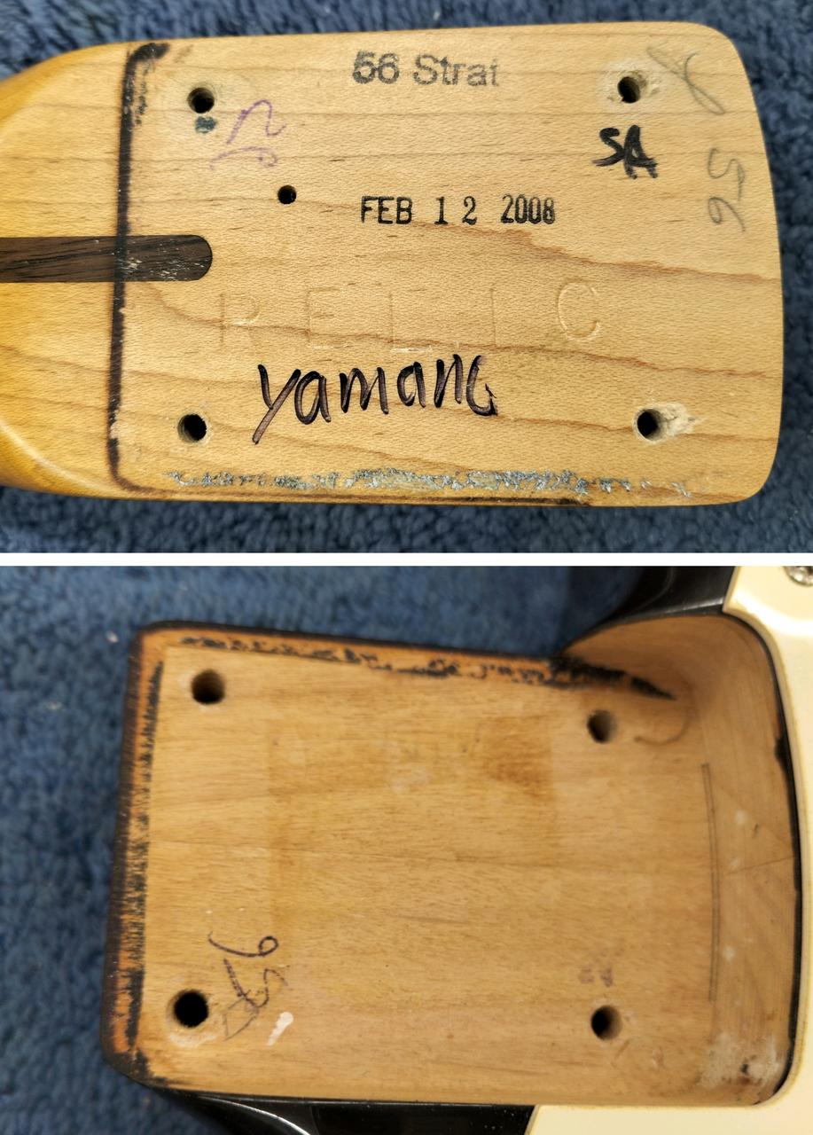 FENDER CUSTOM SHOP製の56ストラトキャスター。しっかりとしたグリップ感のVシェイプの「10/56 ”V”」シェイプ採用。 |