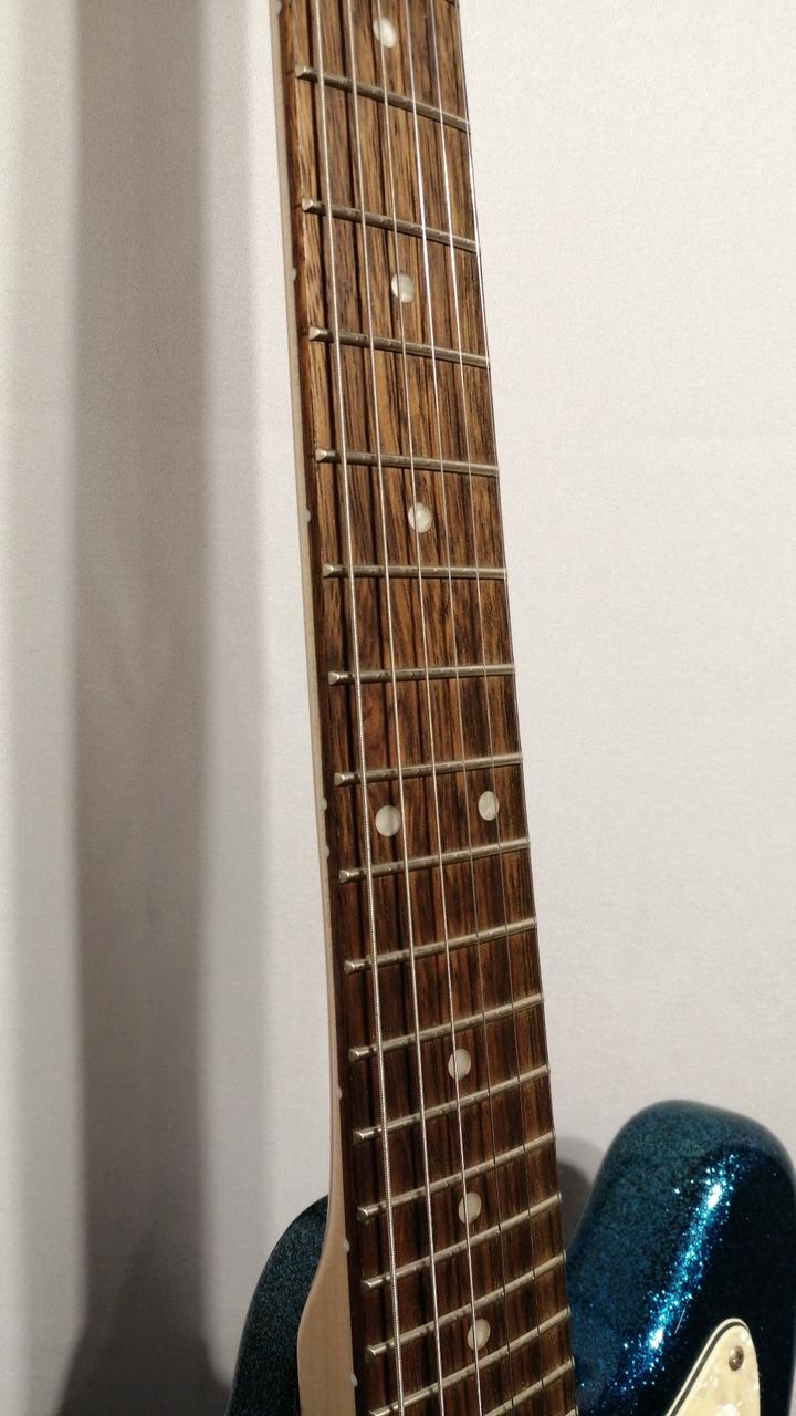 シンプルな2ハムバッカーに610mmショートスケールにスリムなネック&細めのナットを採用。 |