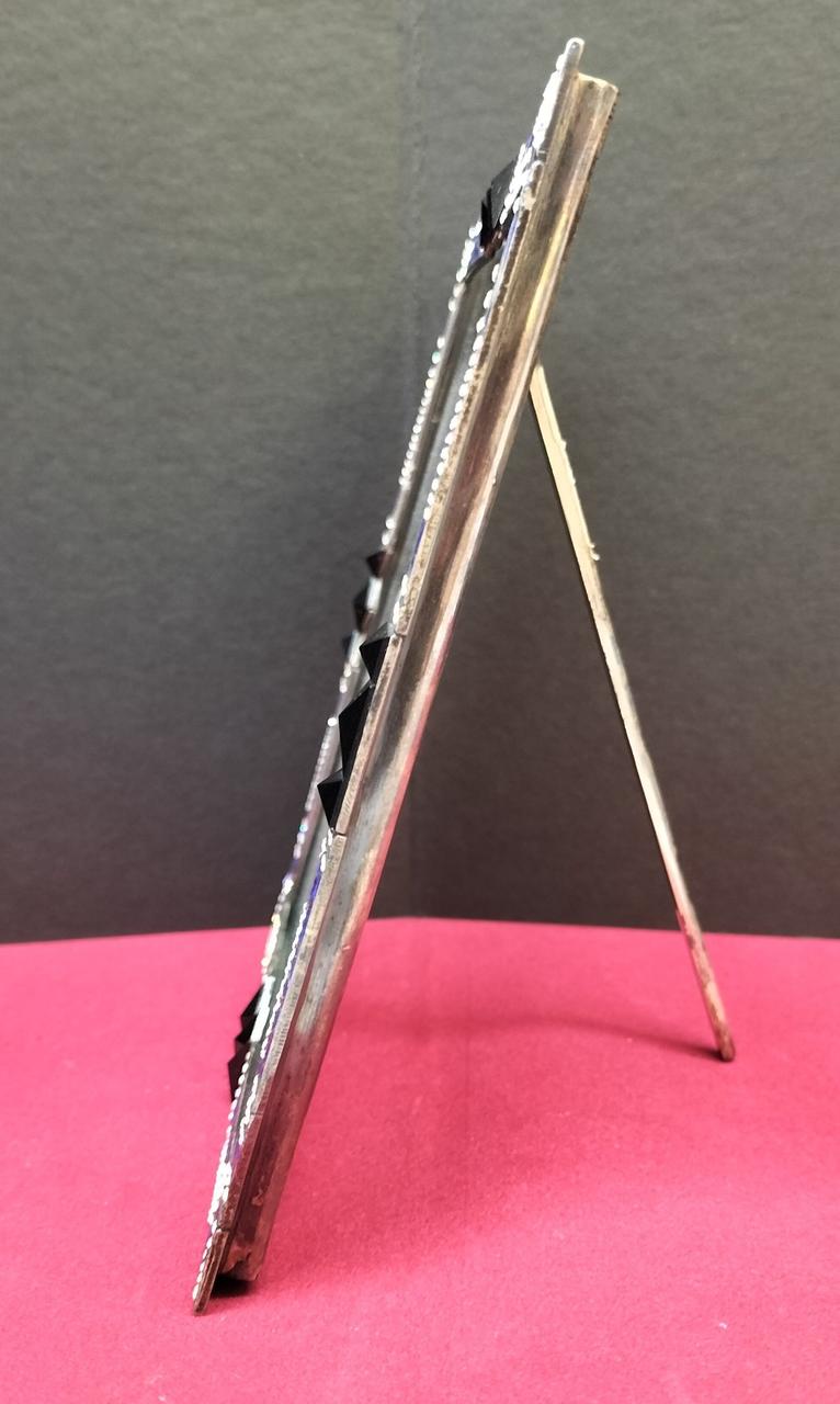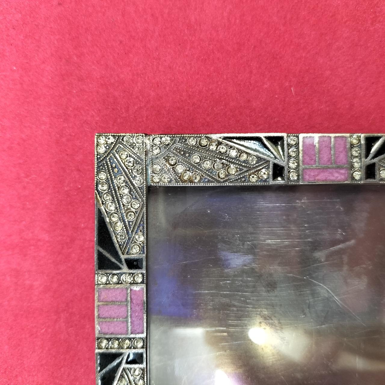 アールデコ様式の幾何学的な模様と流線型の模様を使った色彩の対比が美しいフォトフレーム。中の写真やポストカードは貴方好みに入れ替えても素敵です。