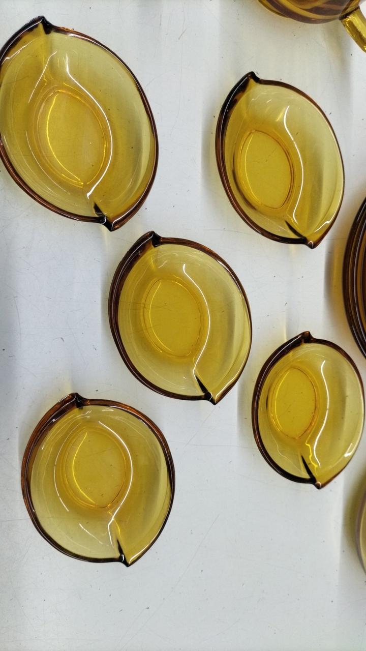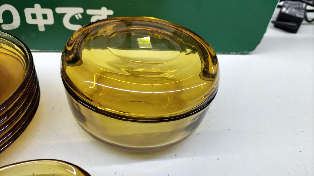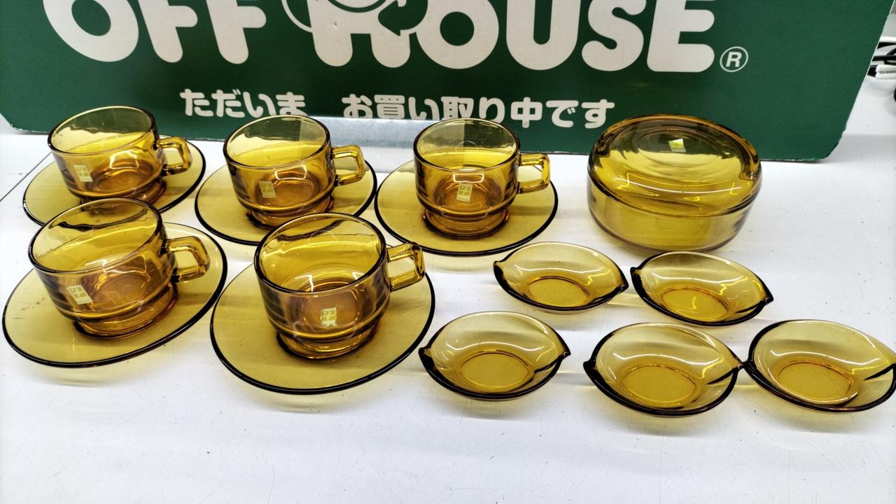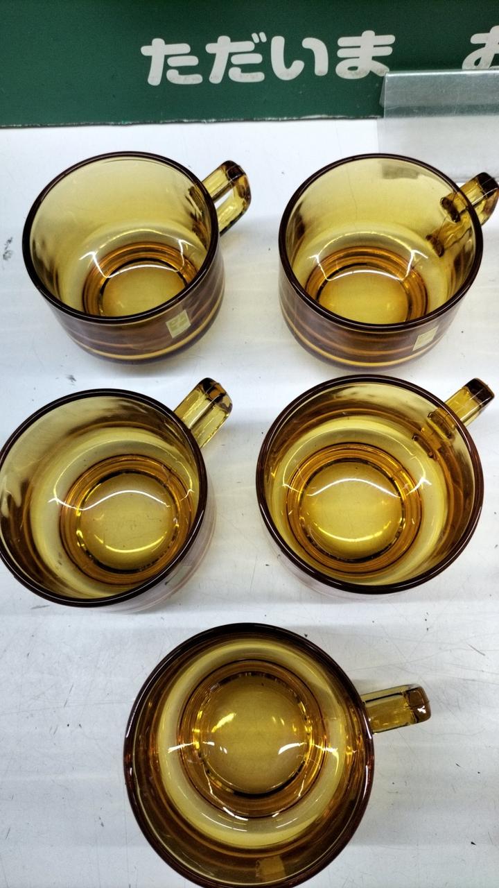 琥珀色が美しいティーカップセットです。箱が劣化でありません···緩衝材を巻いての発送となります。