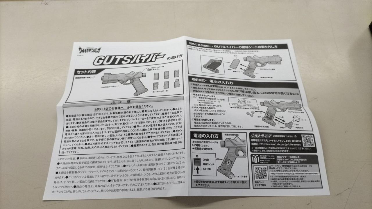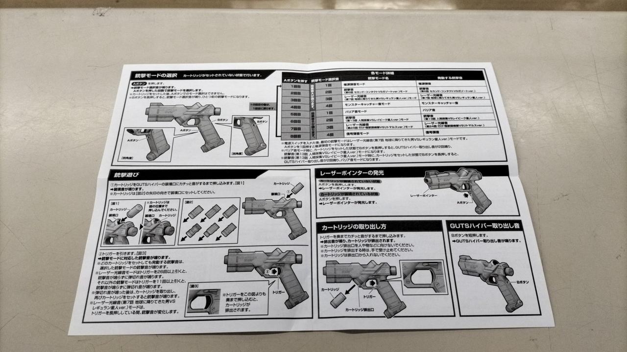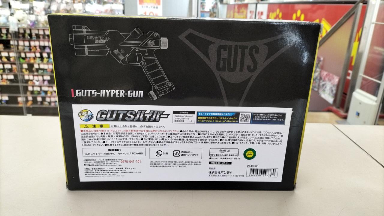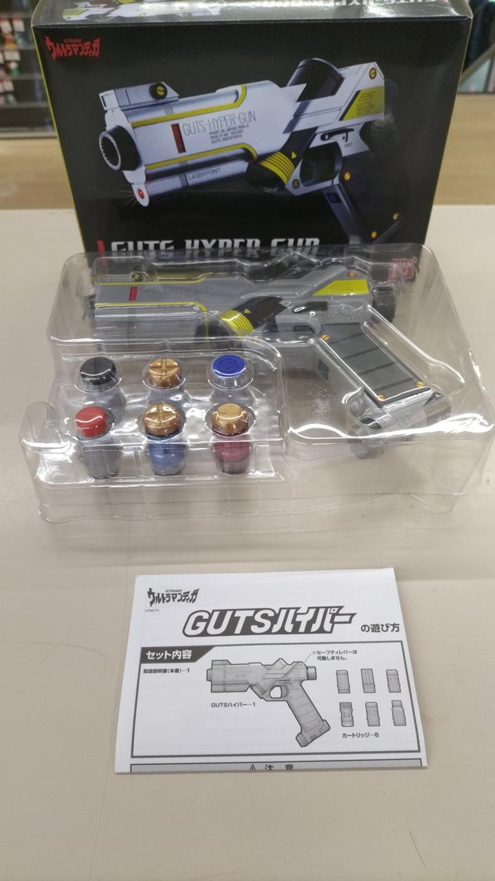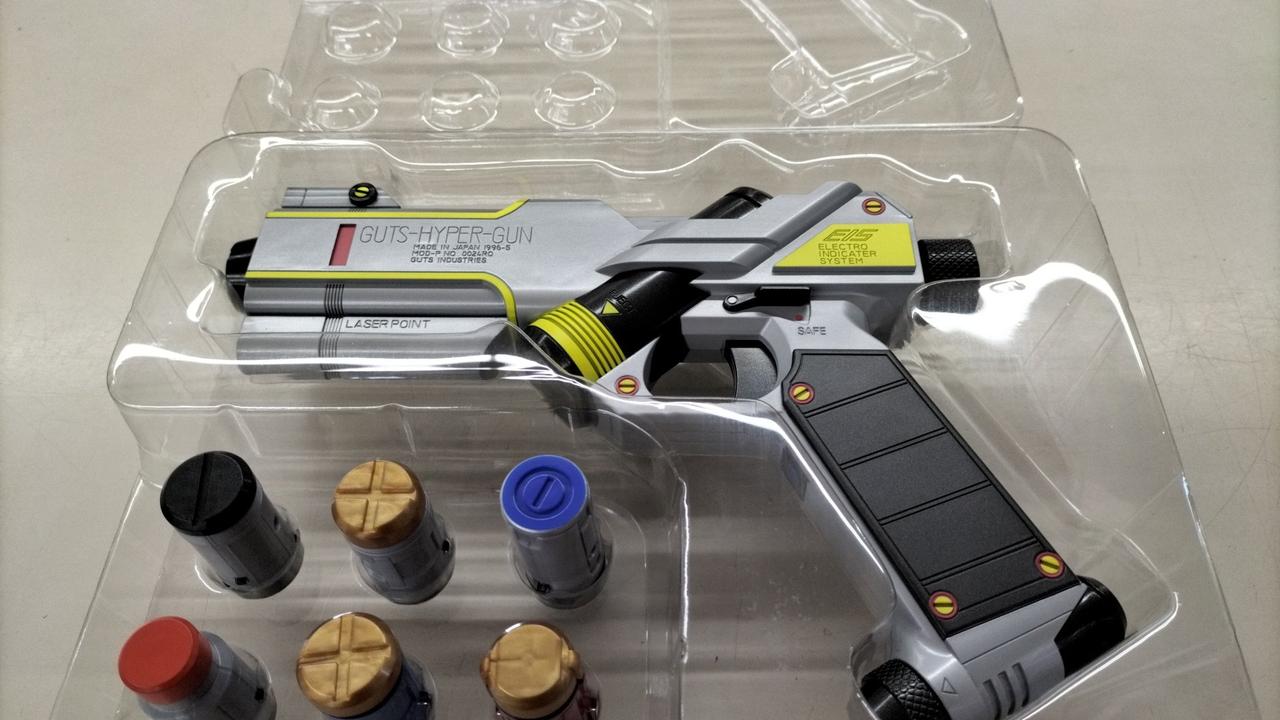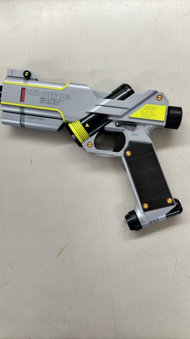 放送当時の玩具「ライト&サウンド ガッツハイパーガン」にはなかった機能や音声を追加して、商品名も劇中に合わせた「GUTSハイパー」へ一新しました。 |