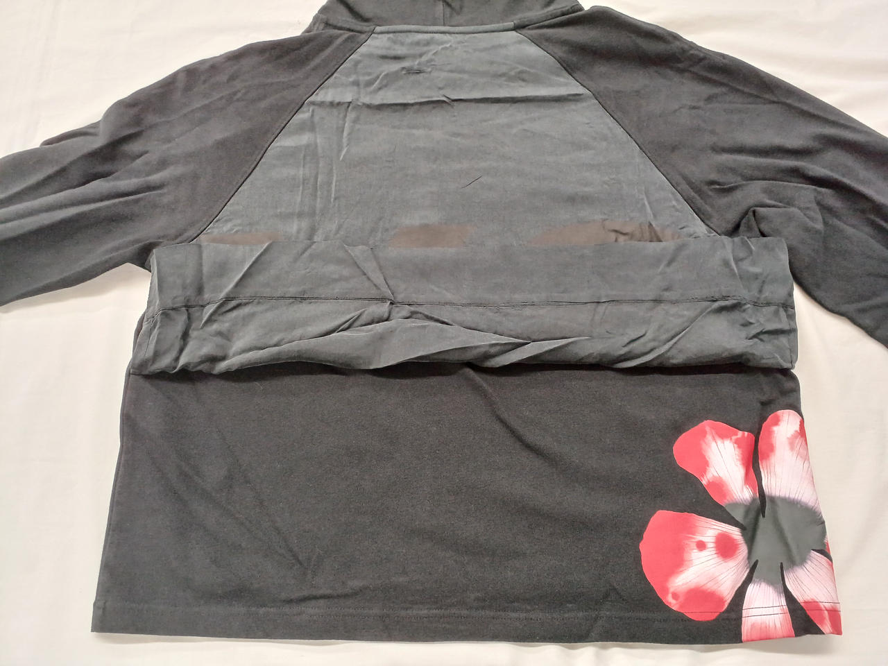 背面の大胆な花のアートワークは日本の生花を想起させる。 |