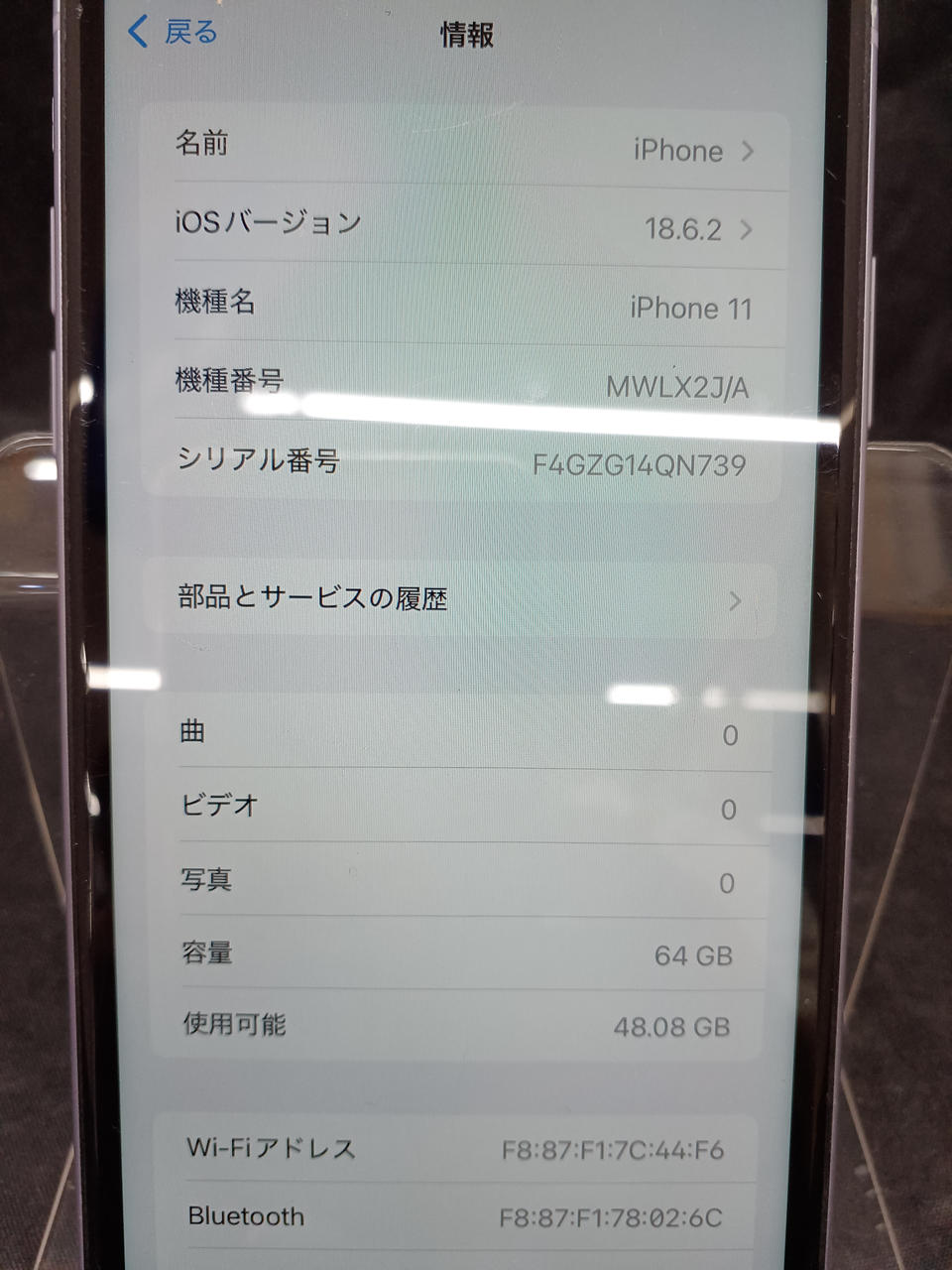 画面下部にヒビ割れ有 |