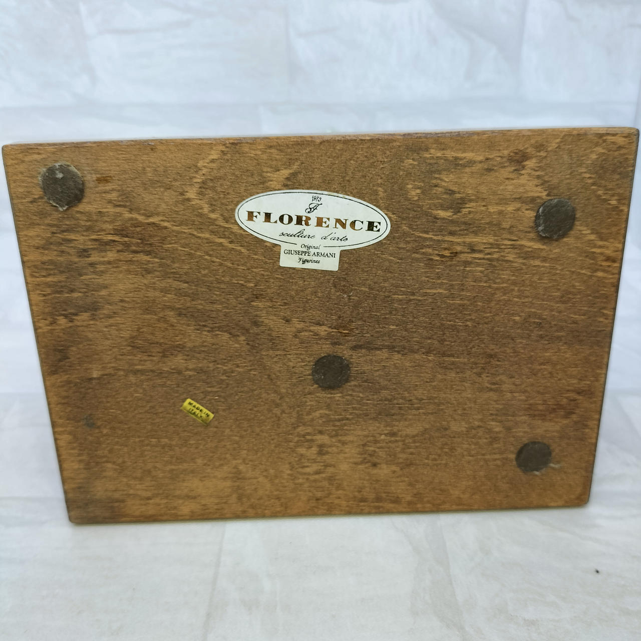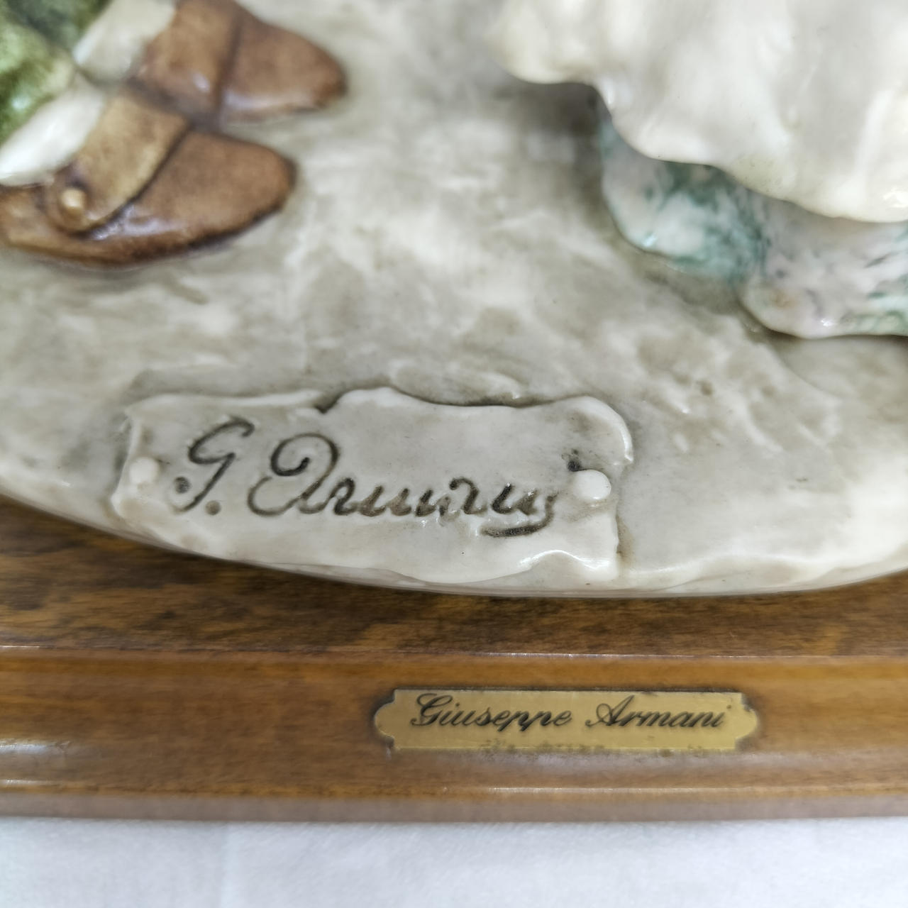 ジョゼッペ・アルマーニは、イタリアの彫刻家・芸術家です。彼は陶器や樹脂を使った人物・動物のフィギュリン(人形)を制作しました。特に、ディズニーキャラクターをモチーフにした作品や、フローレンス社から販売されたフィギュリンが有名です。