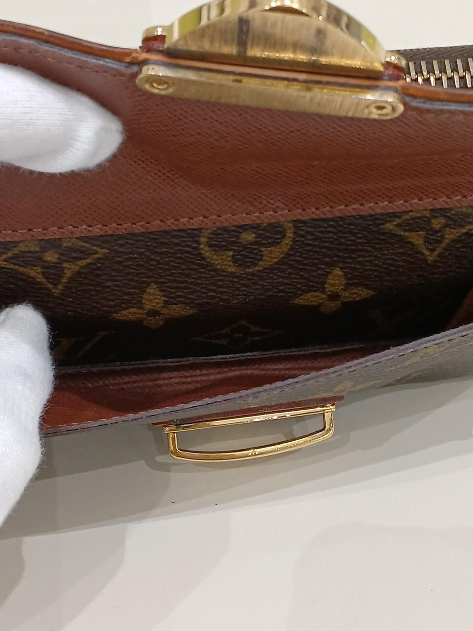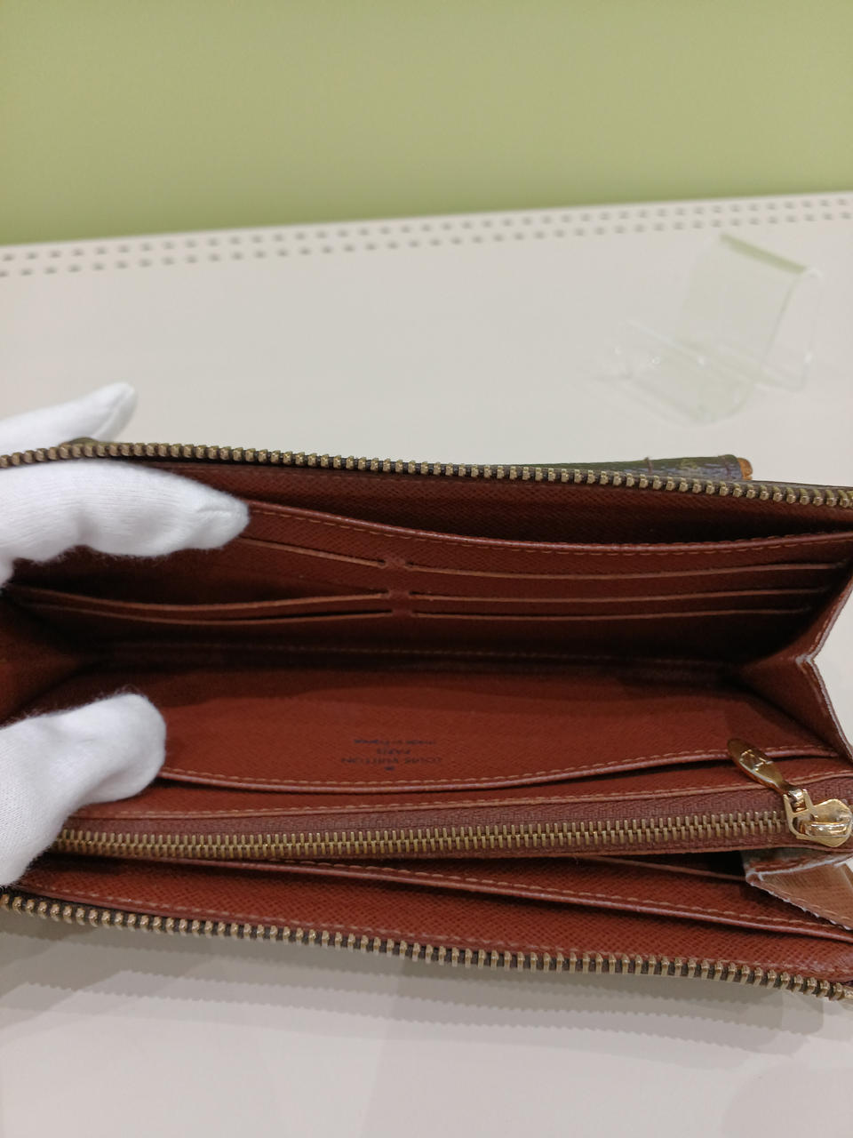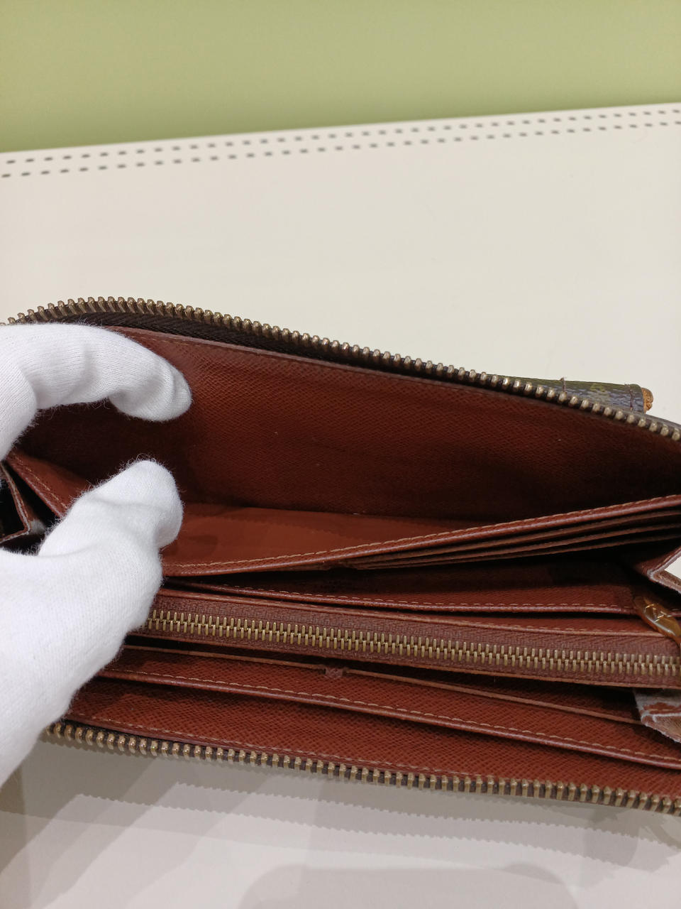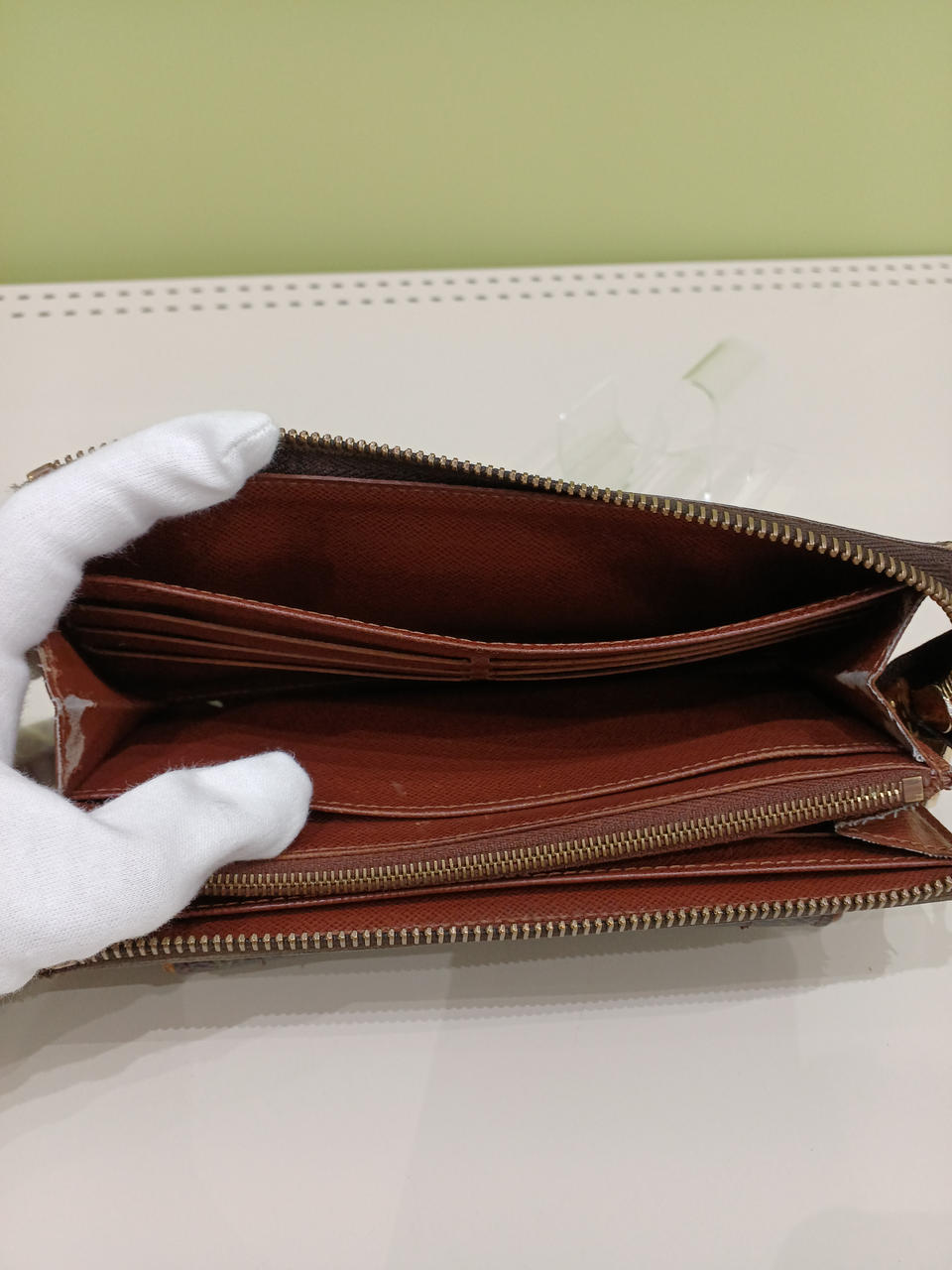 お札入れ部分の横、剥がれあり