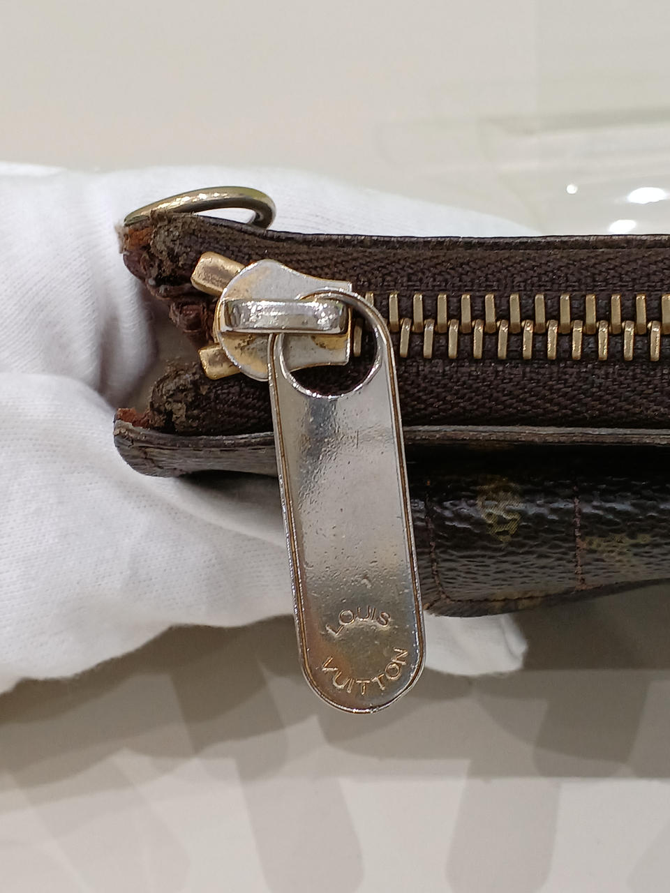 チャックの布部分、少し破けてます