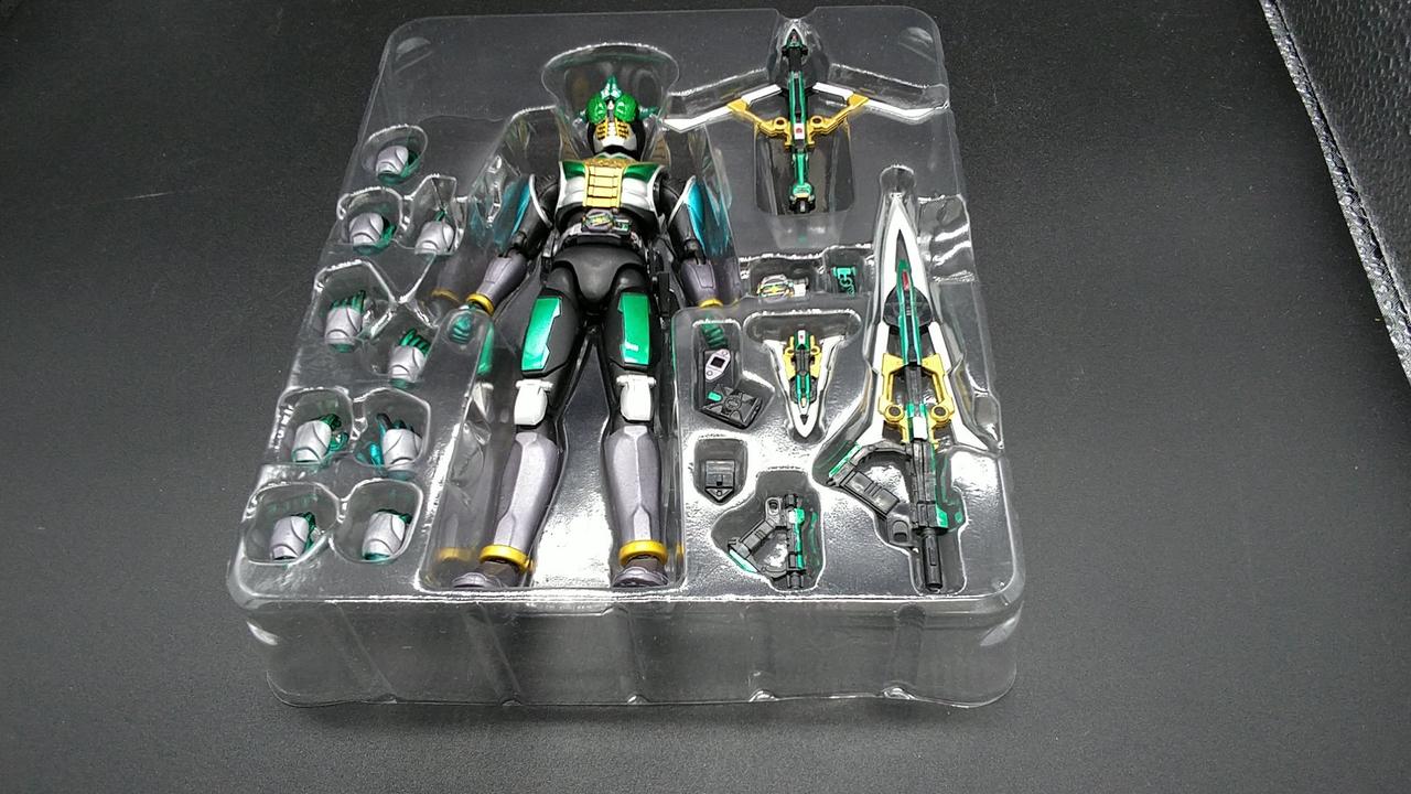 頭部に2匹の牛を模した電仮面を完全再現!武器2種(ボウガンモード・サーベルモード)付属。