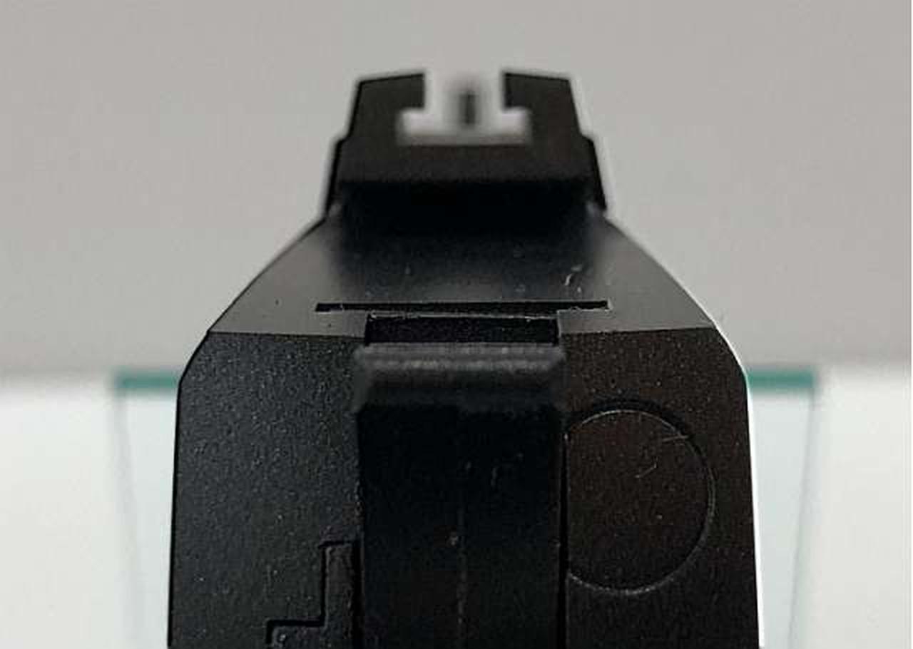 設定資料と作中の描写をもとに、最大の特徴であるストライクフェイス一体型コンペンセイターや、ユニークな形状のグリップ、オリジナル形状のフロント/リアサイト、刻印のないスライド、専用マガジンなど、細部に至るまでこだわった1丁となっています。 |