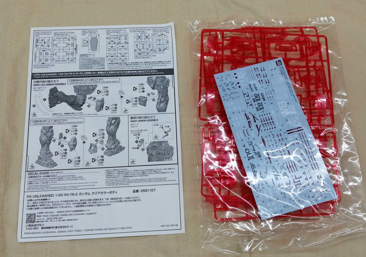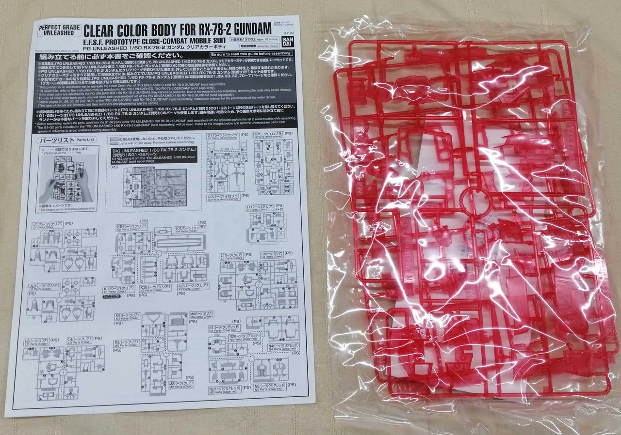 クリアカラーボディを全て使っての組み立てには、組み立てていない『PG UNLEASHED 1/60 RX-78-2 ガンダム(別売り)』が1セット必要です。 |