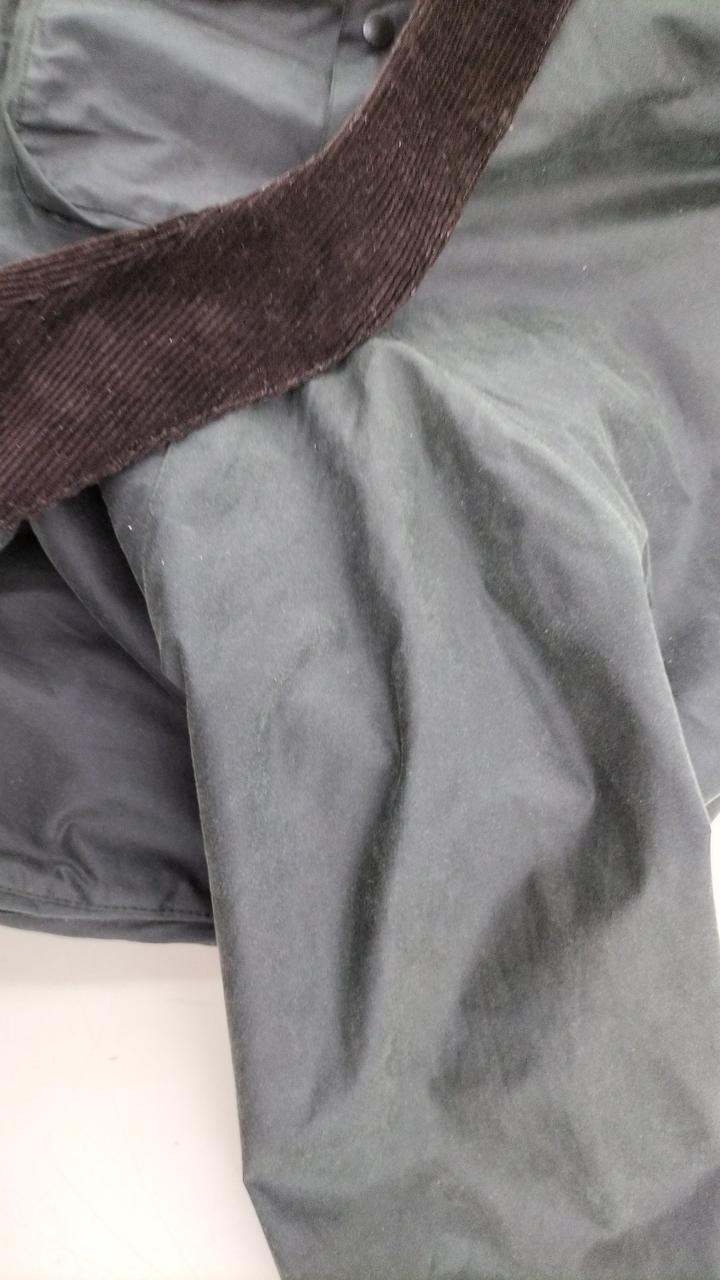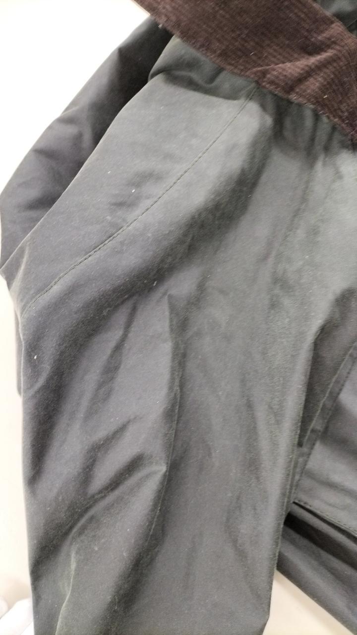 肩周り、袖口にコーティングの剥げ、変色あり |