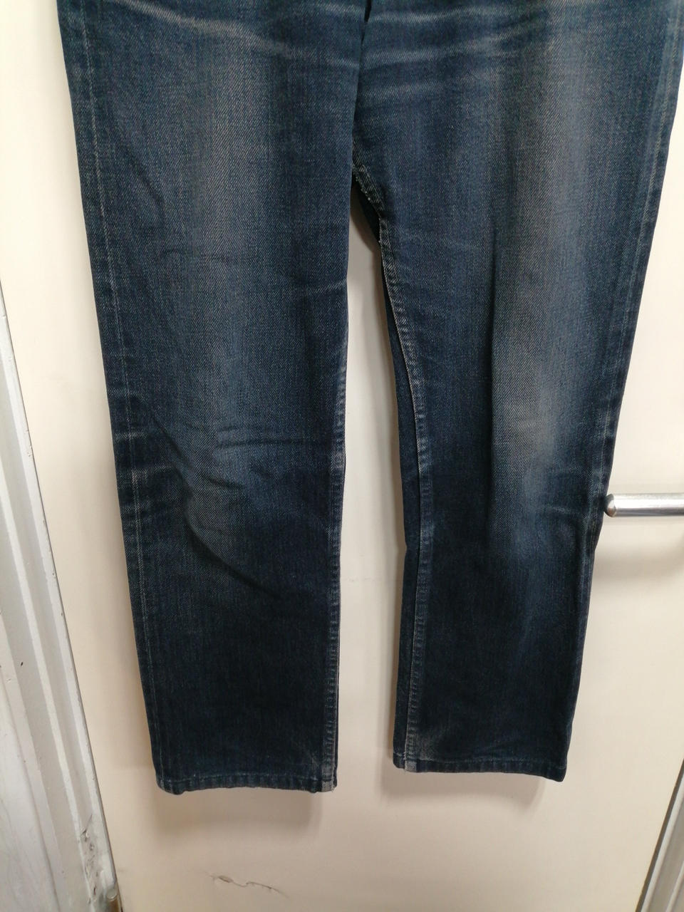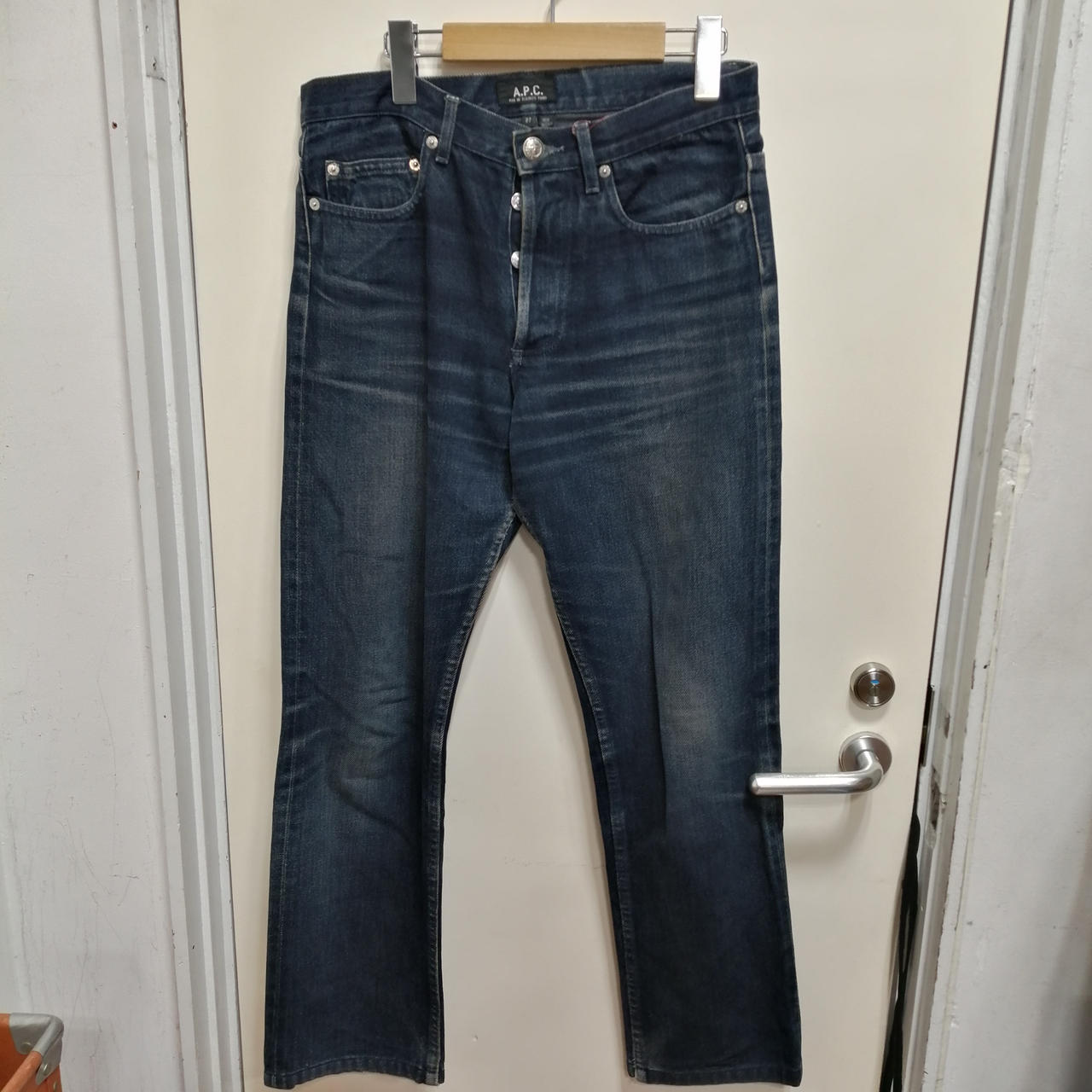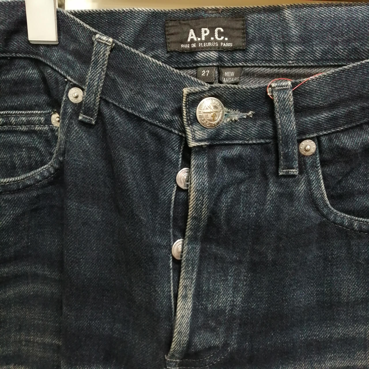 クラッシュ加工ボタンフライデニムパンツ
