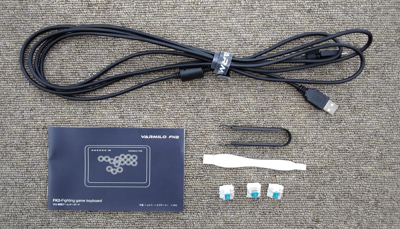 USBケーブル、交換用キースイッチ、ケース、箱、説明書、本体開封用工具、キースイッチプラー |