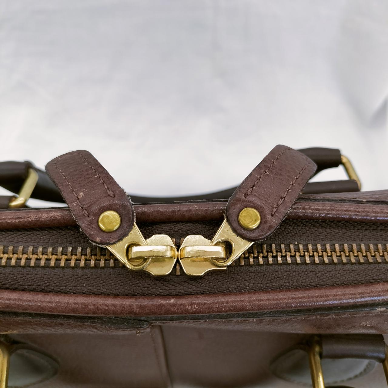 開口部のファスナーは下まで大きく開く三方開きの蛇腹マチ仕様で、物の出し入れがしやすくなっています。傷や擦れは有りますが、ホツレなど無くまだまだお使い頂けるお品物です!