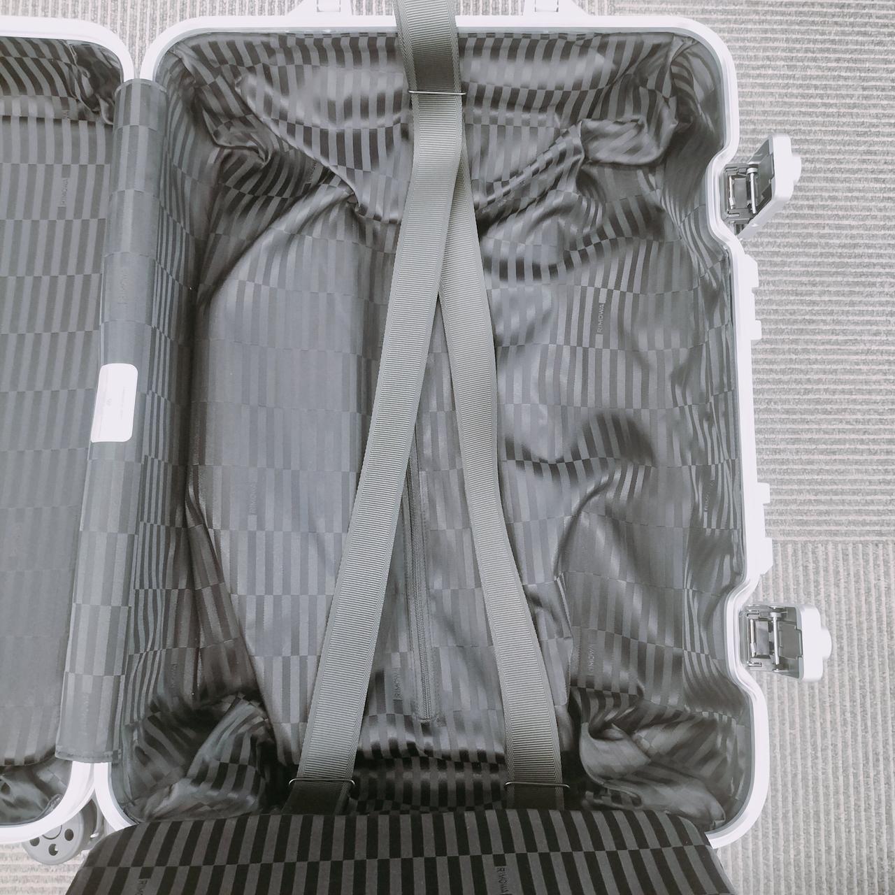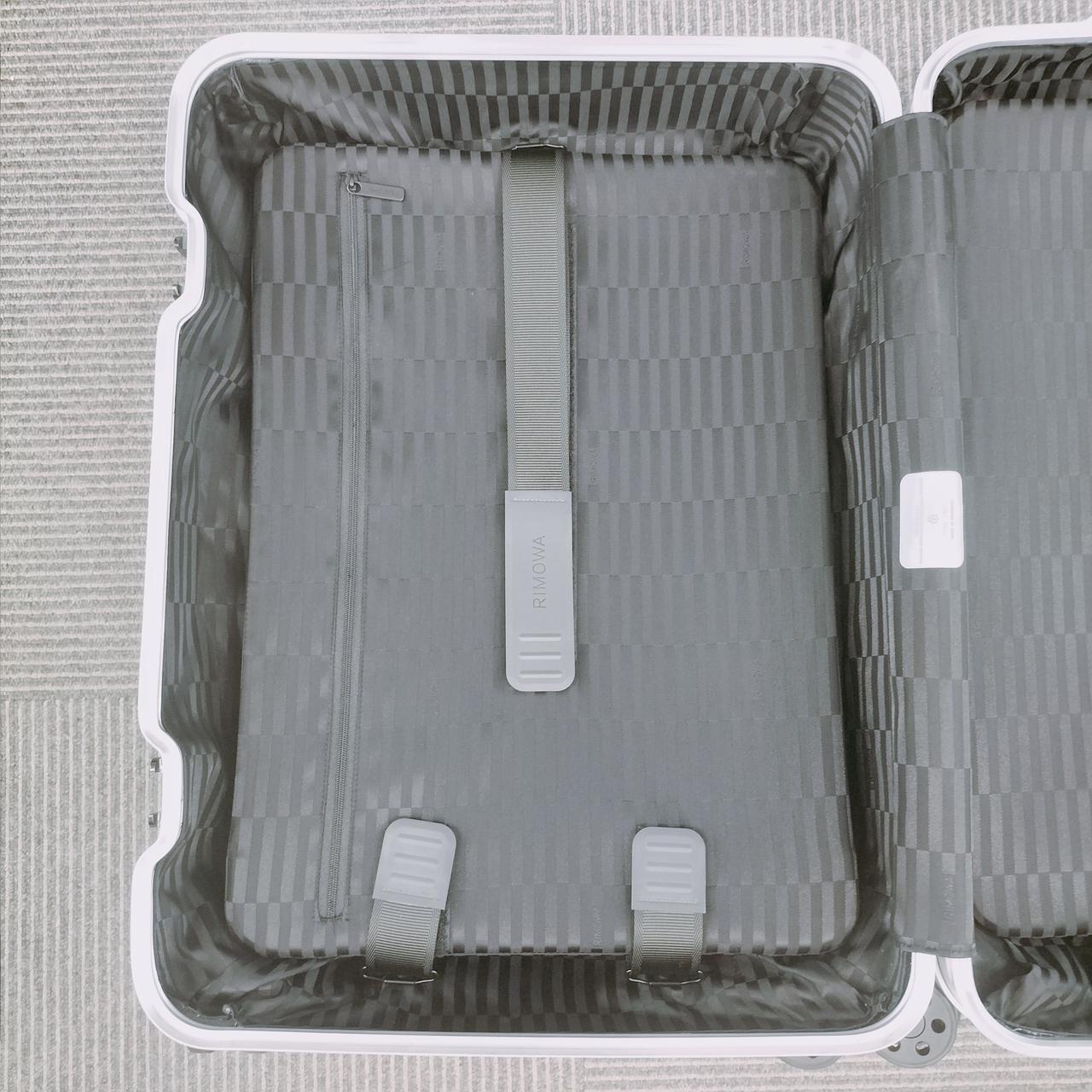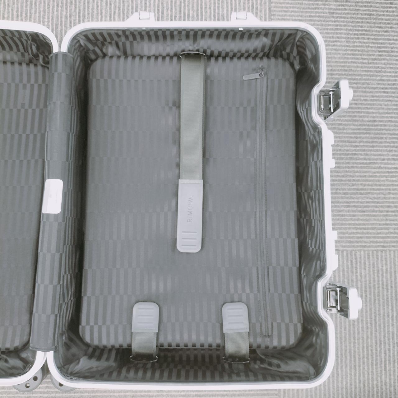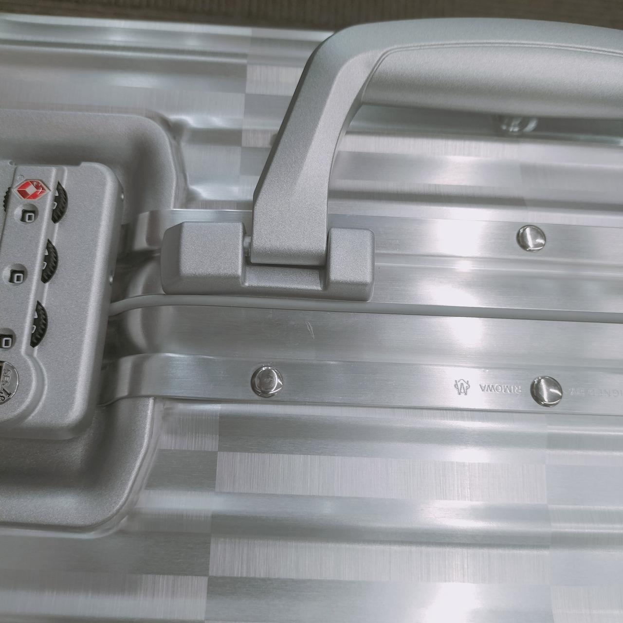 ボディ部分全面に配置された幾何学的なパターンによりリモワの象徴的なグルーヴが消えていくような目の錯覚を生み出しているのが特徴。このダイナミックなビジュアルを実現するために、ケルンの工場で製作されたブラッシュ仕上げのアルミニウムと未ブラッシュ仕上げのアルミニウムの2種類を効果的に使用しているお品物です。