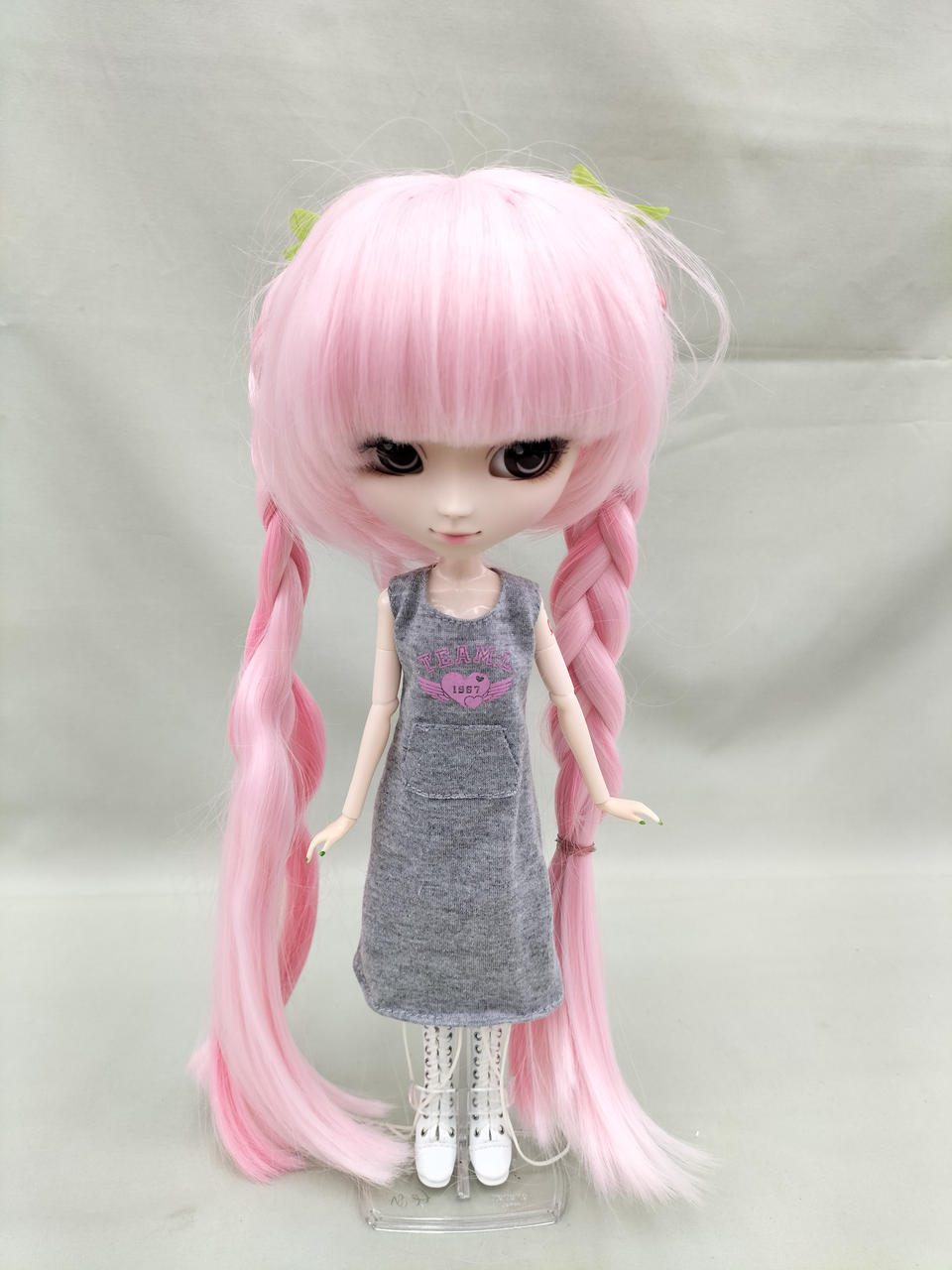 向かって左側の三つ編みがほどけかけています。到着した時にお写真よりもほどけている可能性があります。あらかじめご了承ください。 |