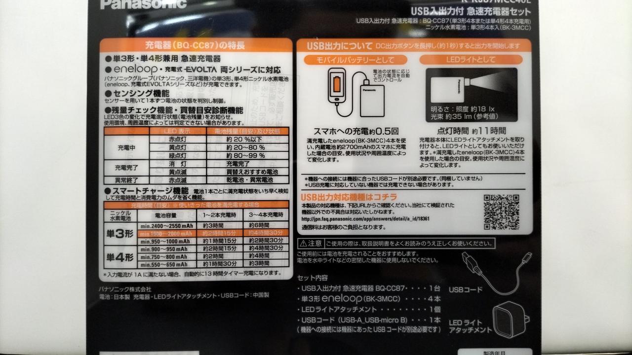 エネループが充電できるUSB入出力急速充電器(単3形エネループ4本付き) |