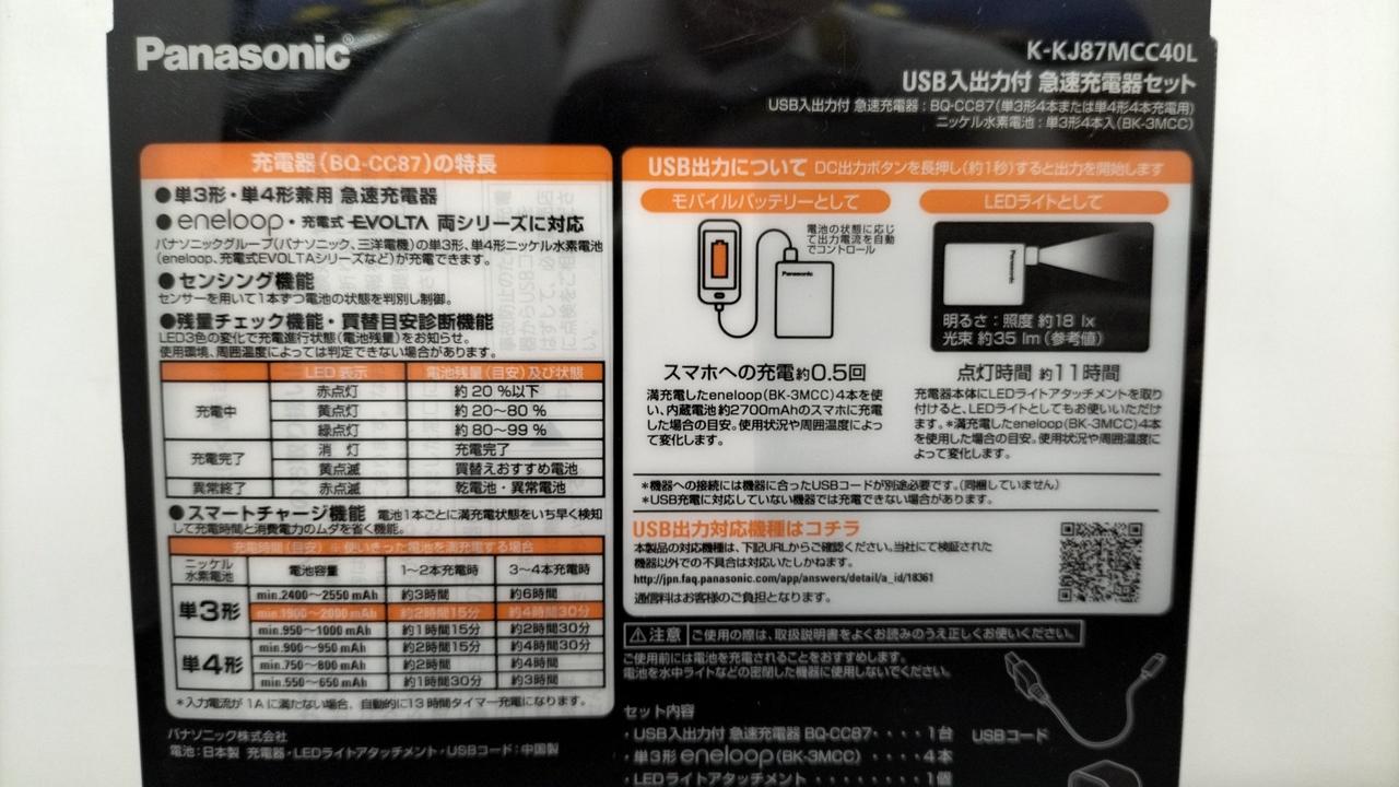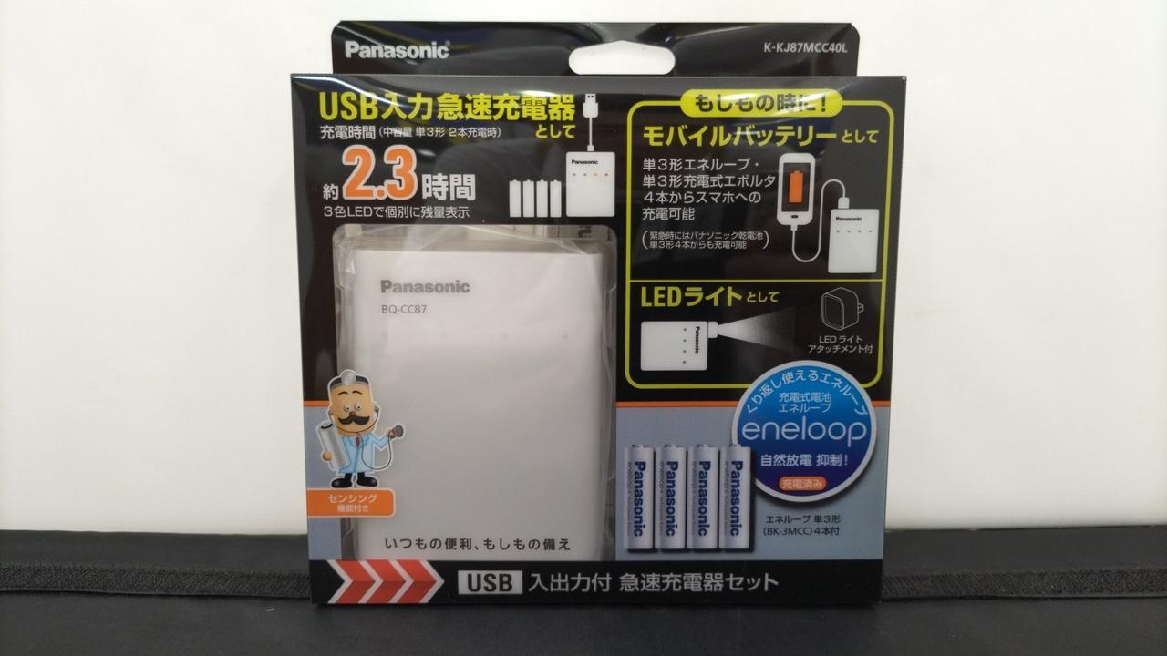 エネループが充電できるUSB入出力急速充電器(単3形エネループ4本付き) |