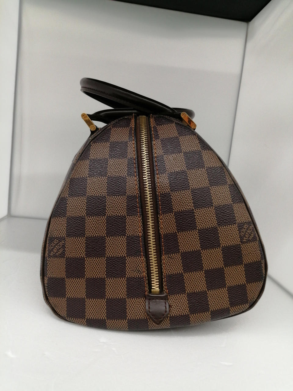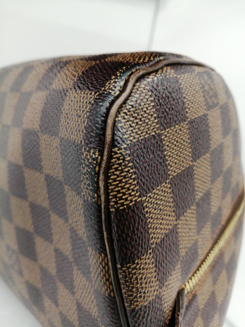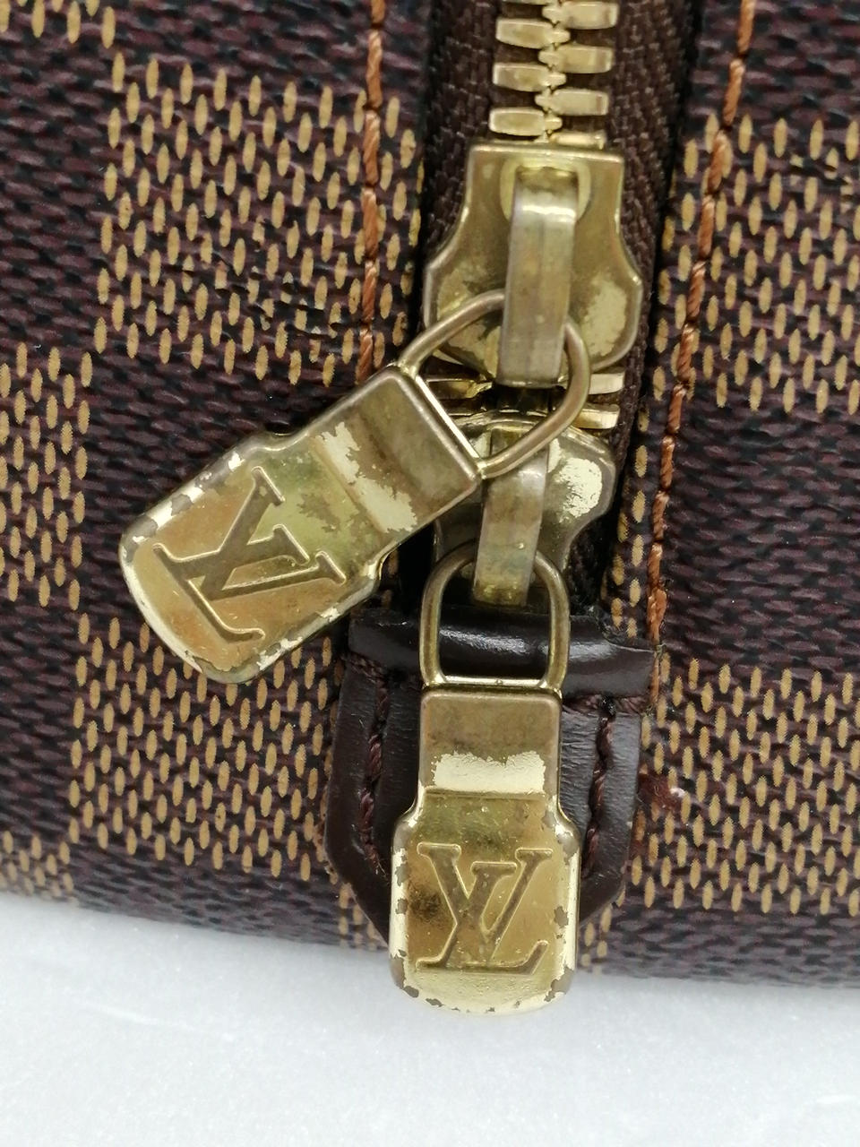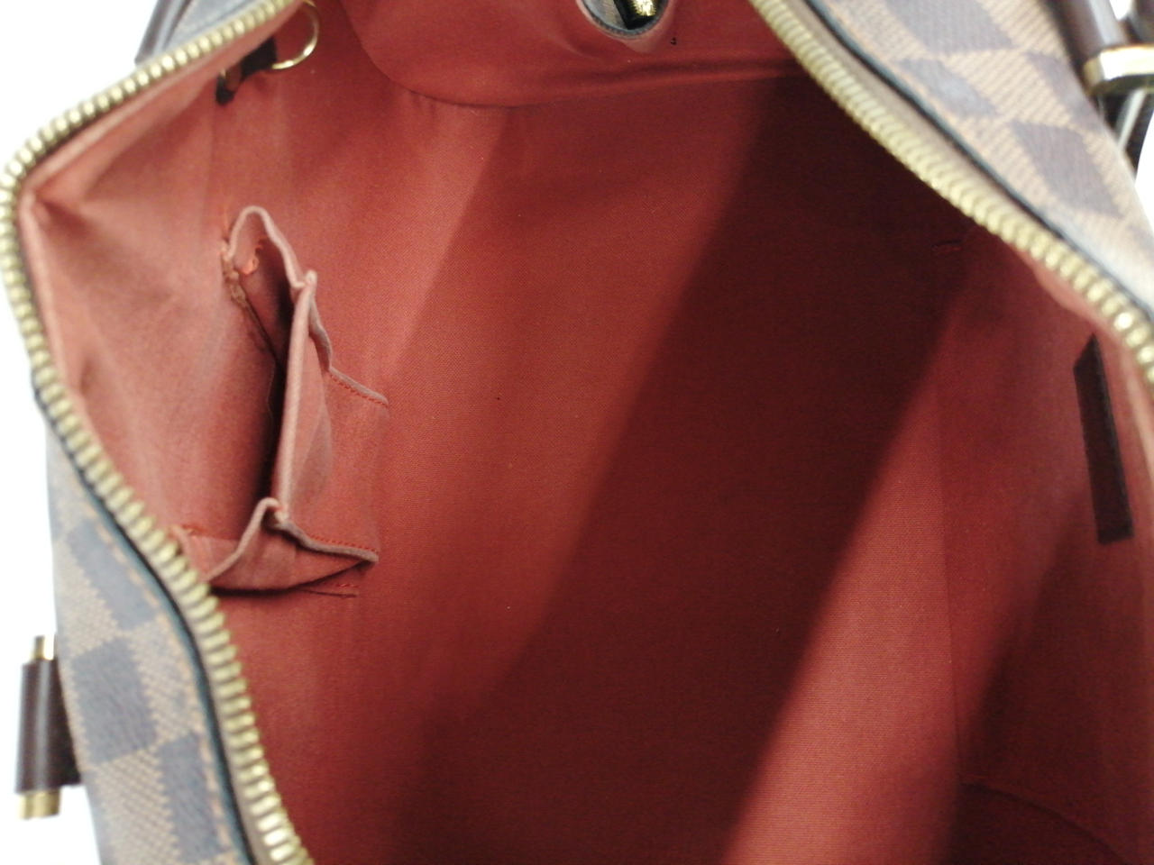 角スレ、金具部分にハガレあり。内部のポケット部分にかなり変色が強いお品物です。 |