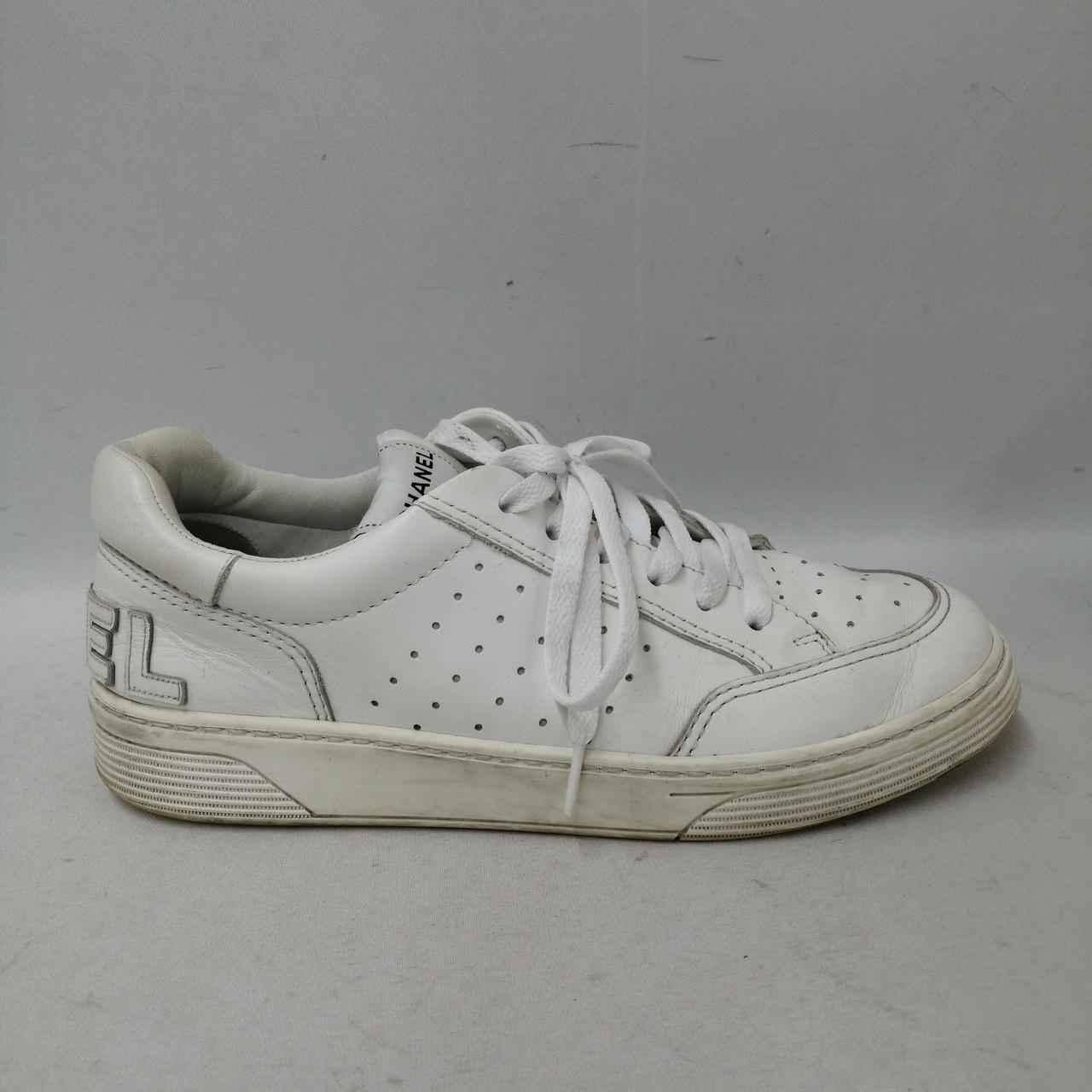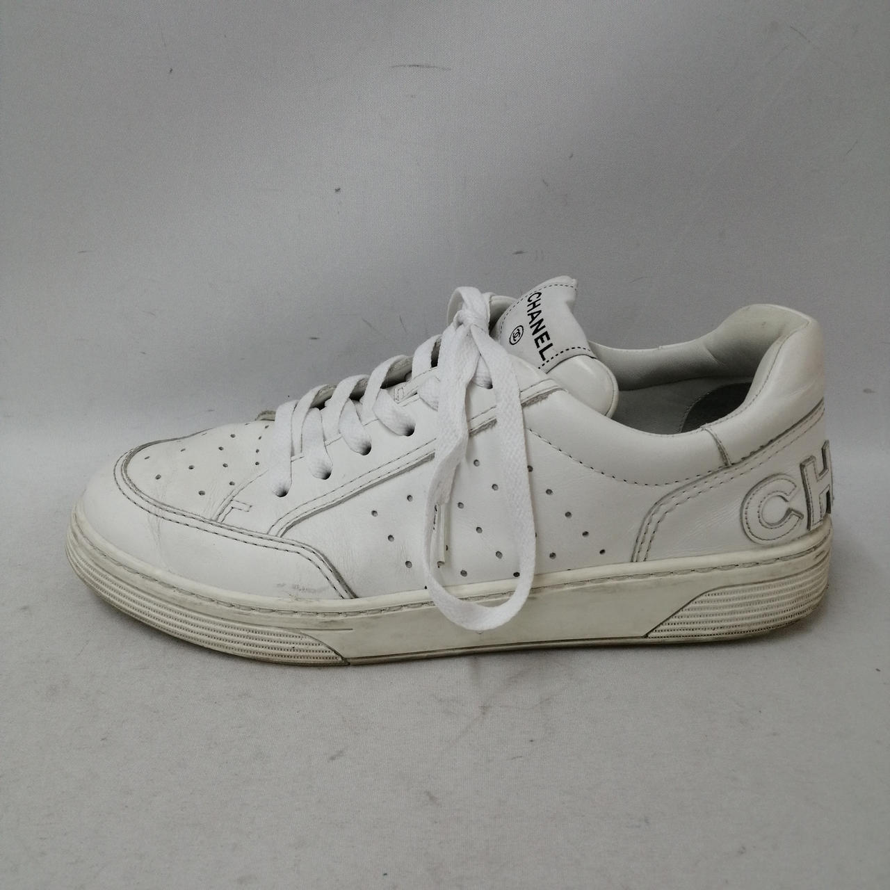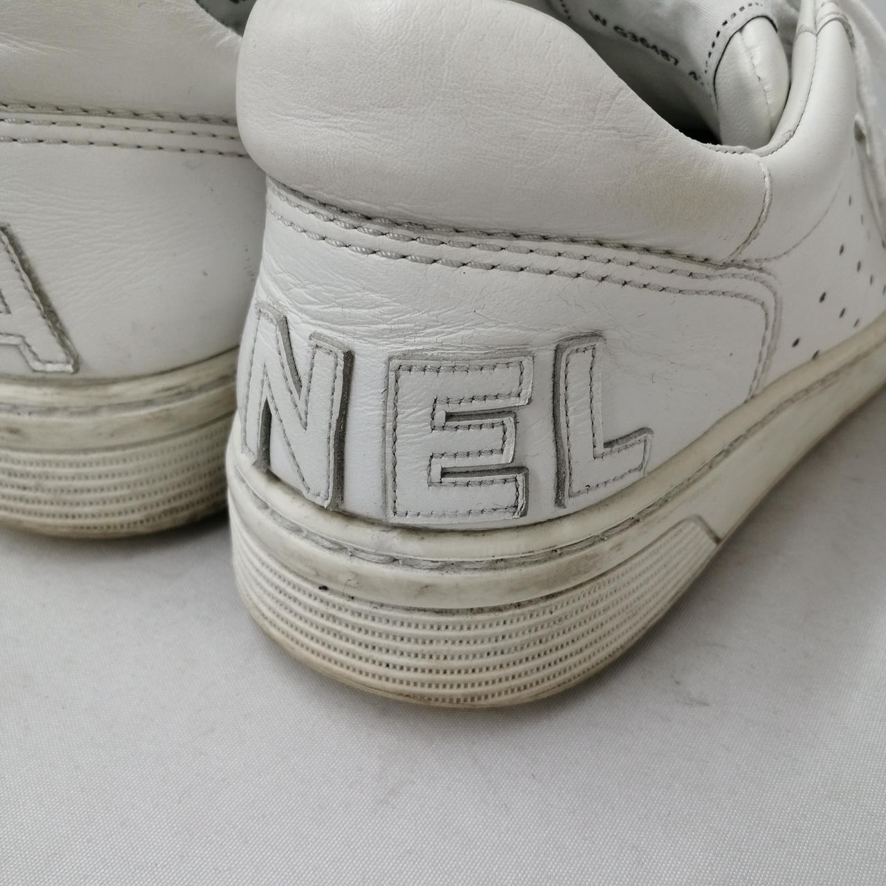 日常使用程度の使用感、黒ずみや履き皺、擦れ等が見られます。 |