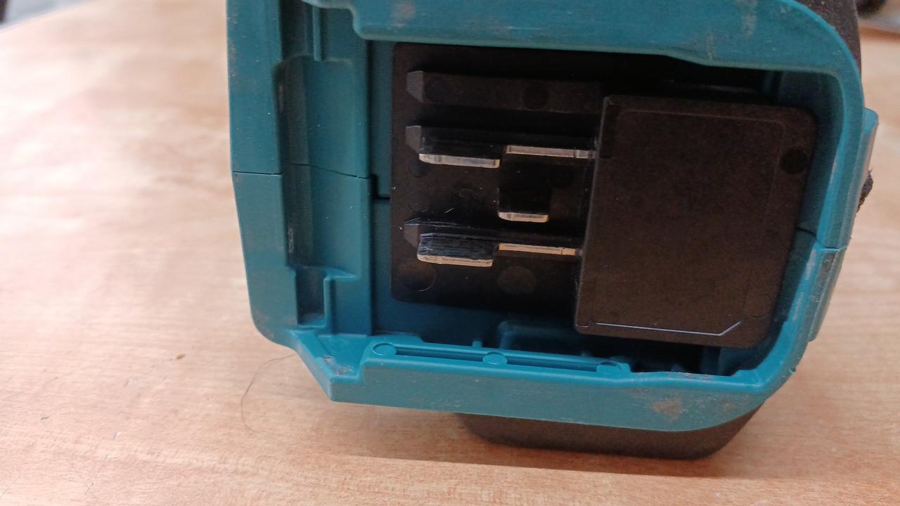 端子接触点が多く、本機にしっかりホールド(差込式バッテリ比)。 |