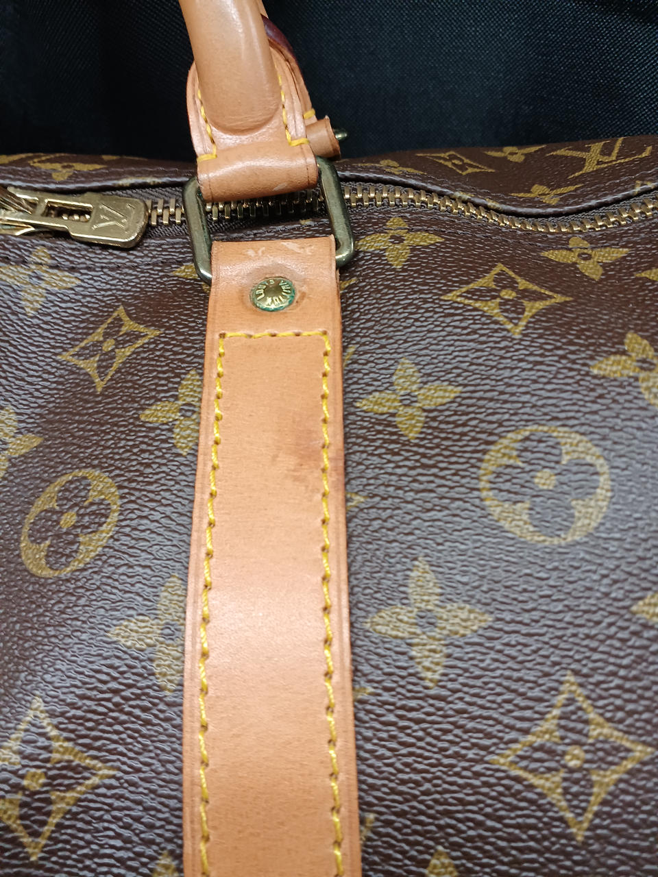 たたみクセ、角スレ、ヌメ革に汚れ、青錆の付着、内側には保管によるシミがございます。 |