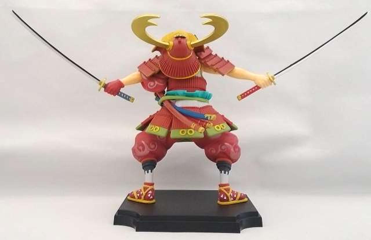 作中でも印象的な鎧を武装した「ルフィ太郎」を再現したフィギュアです。出陣を目前に、士気の高まりが感じられる表情、腰を落とした力強いポージング、さらに細部までこだわり抜いた鎧の造形、彩色など…見どころ満載&豪華絢爛な仕上がりとなっています! |