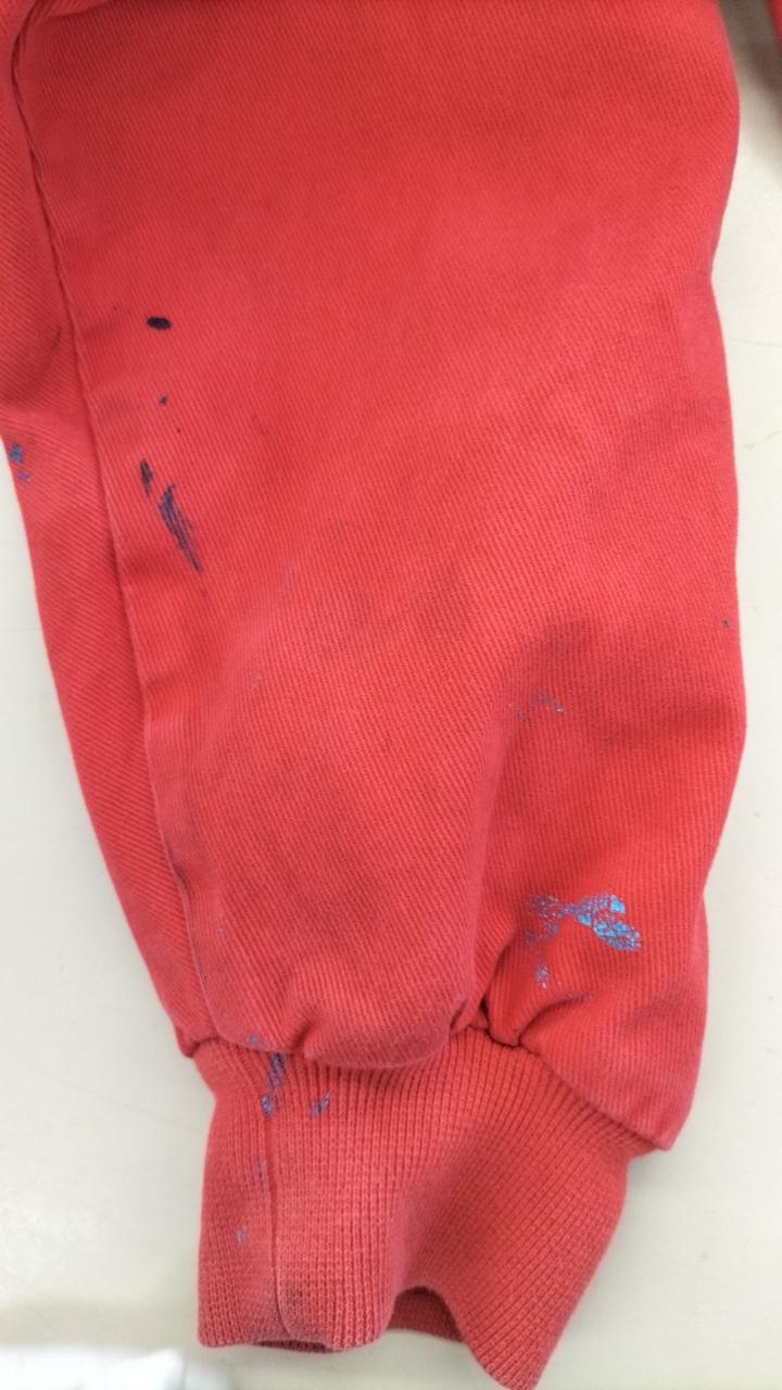 袖や肩などにペンキや油汚れなど多数あります |