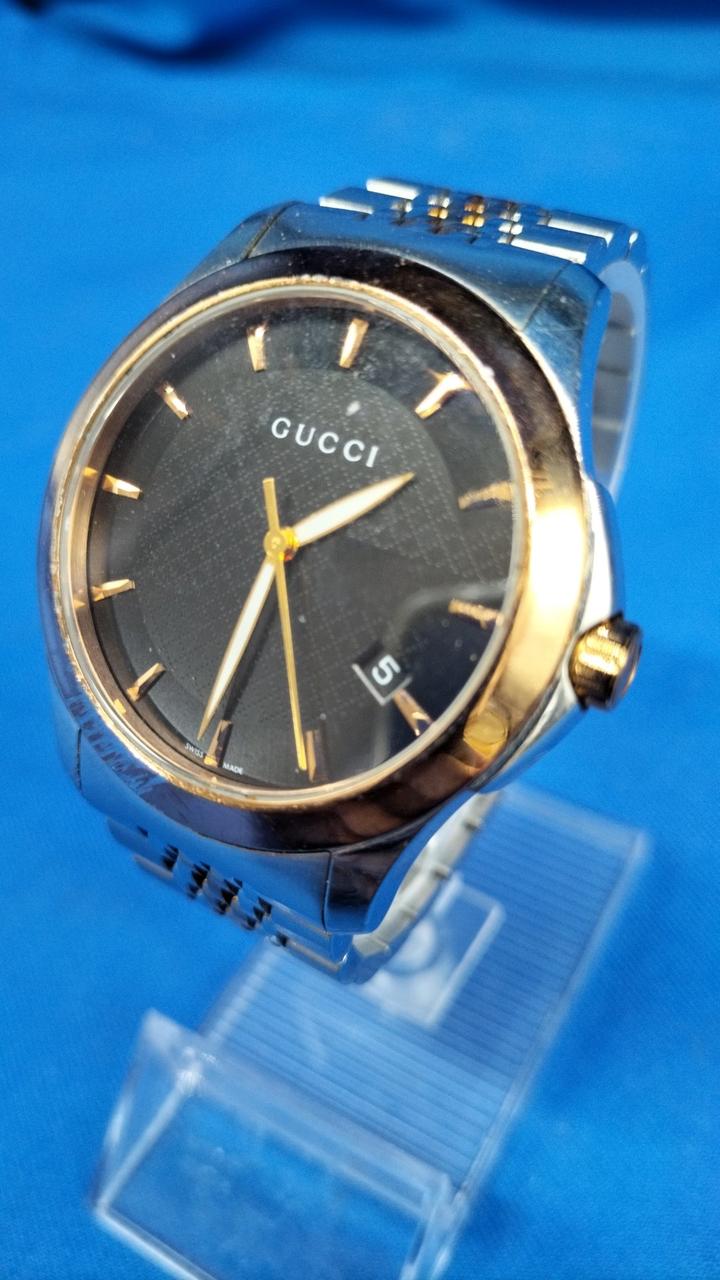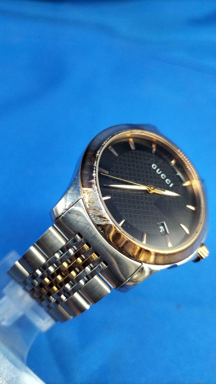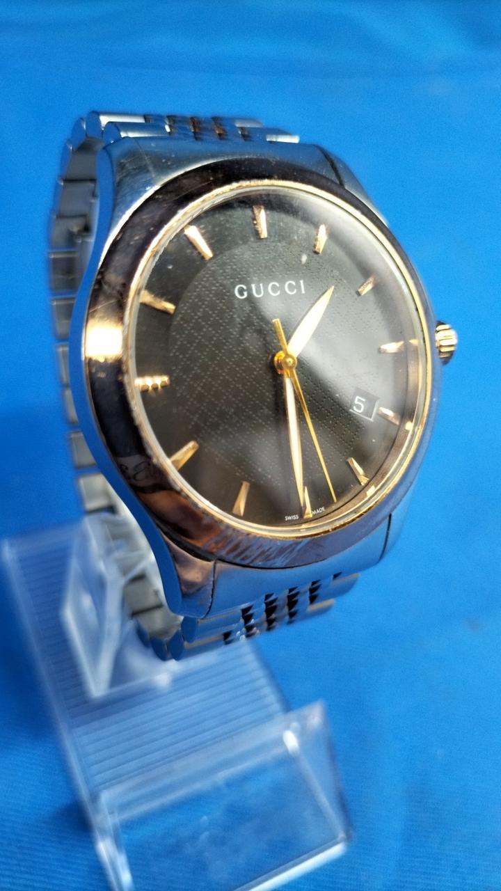 さり気なく外円部分を彩る「G」のロゴが施されているGUCCIのベストセラーウォッチです。