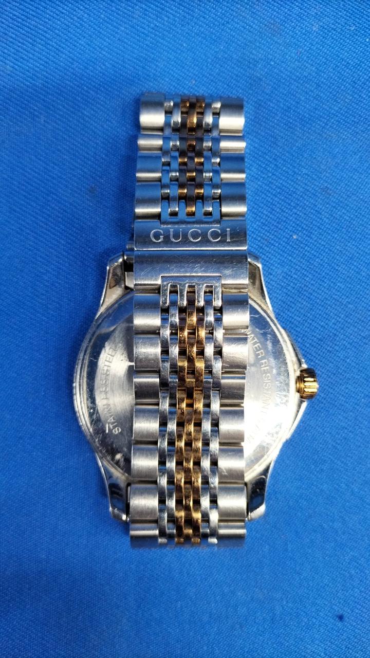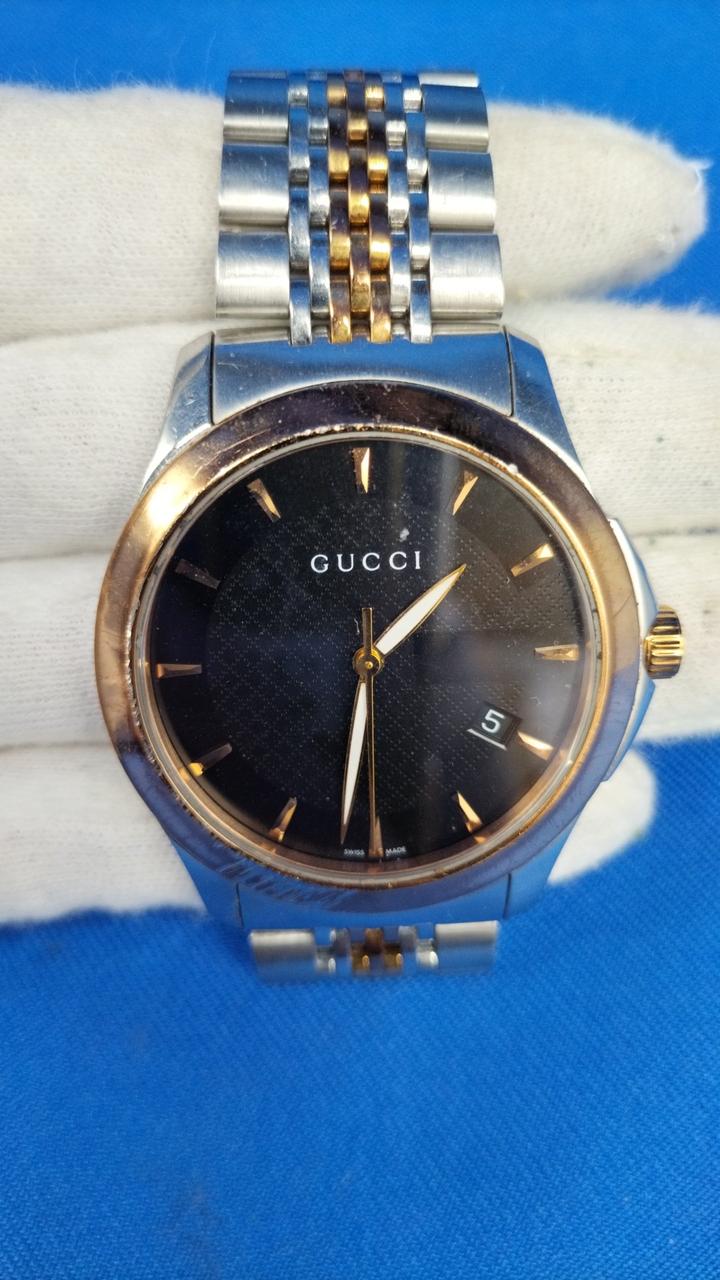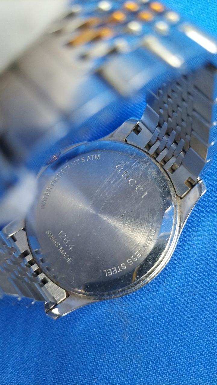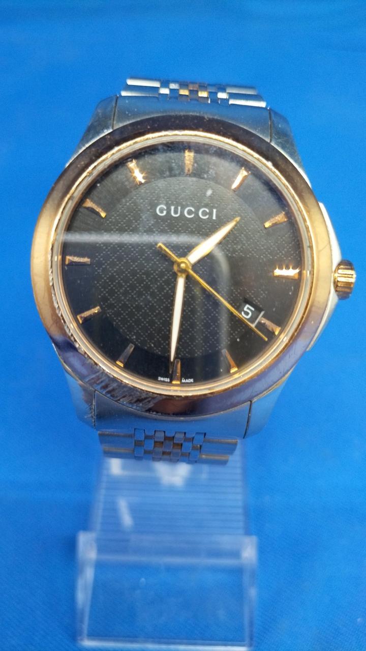 さり気なく外円部分を彩る「G」のロゴが施されているGUCCIのベストセラーウォッチです。