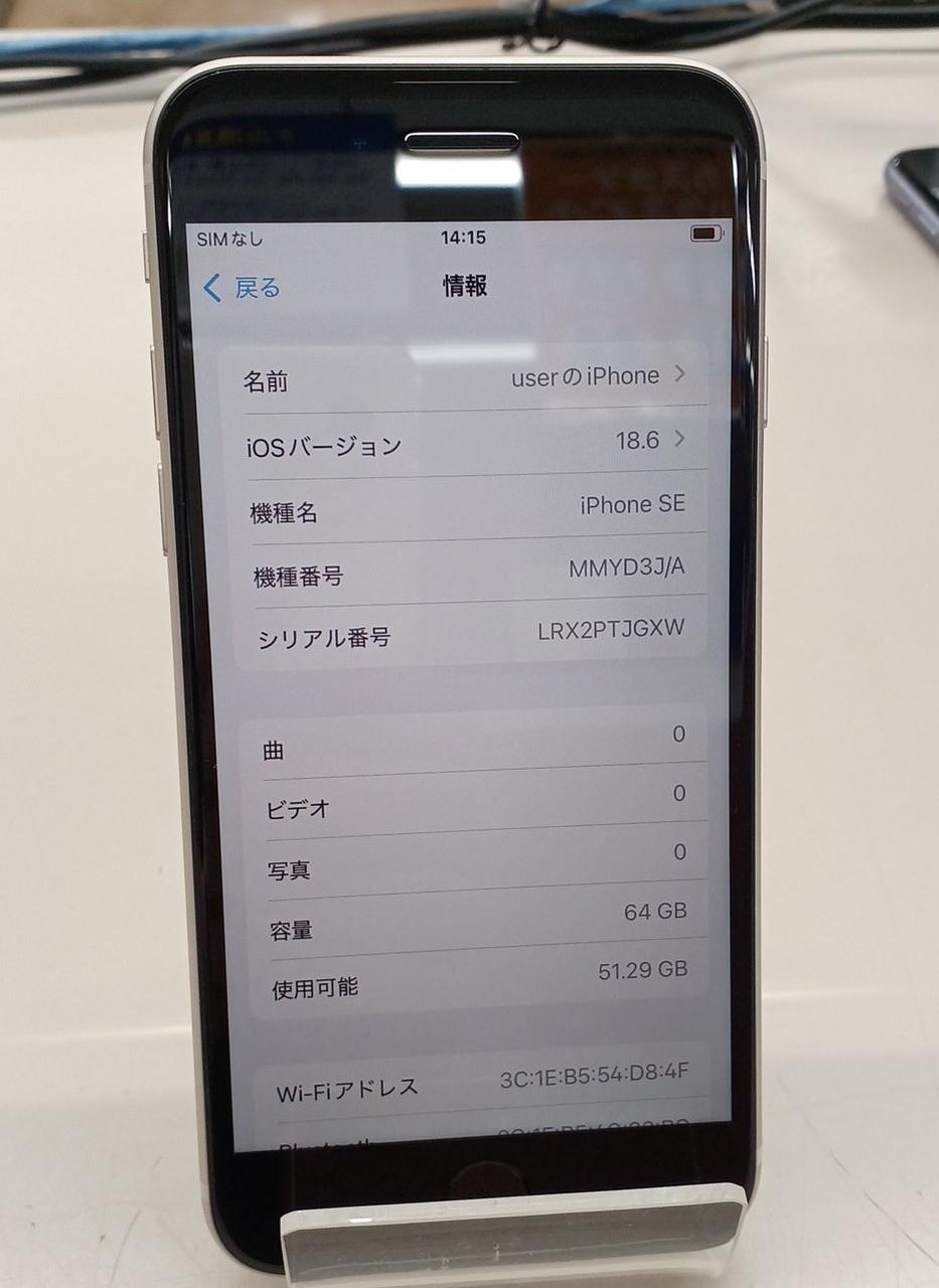 iOS:18.6/CPU:A15/画面サイズ:4.7インチ/内蔵メモリ:64GB |