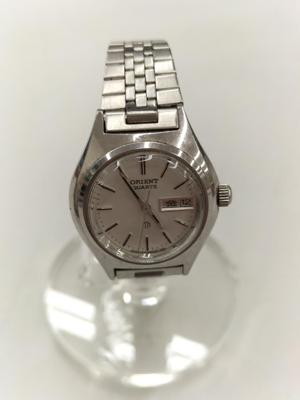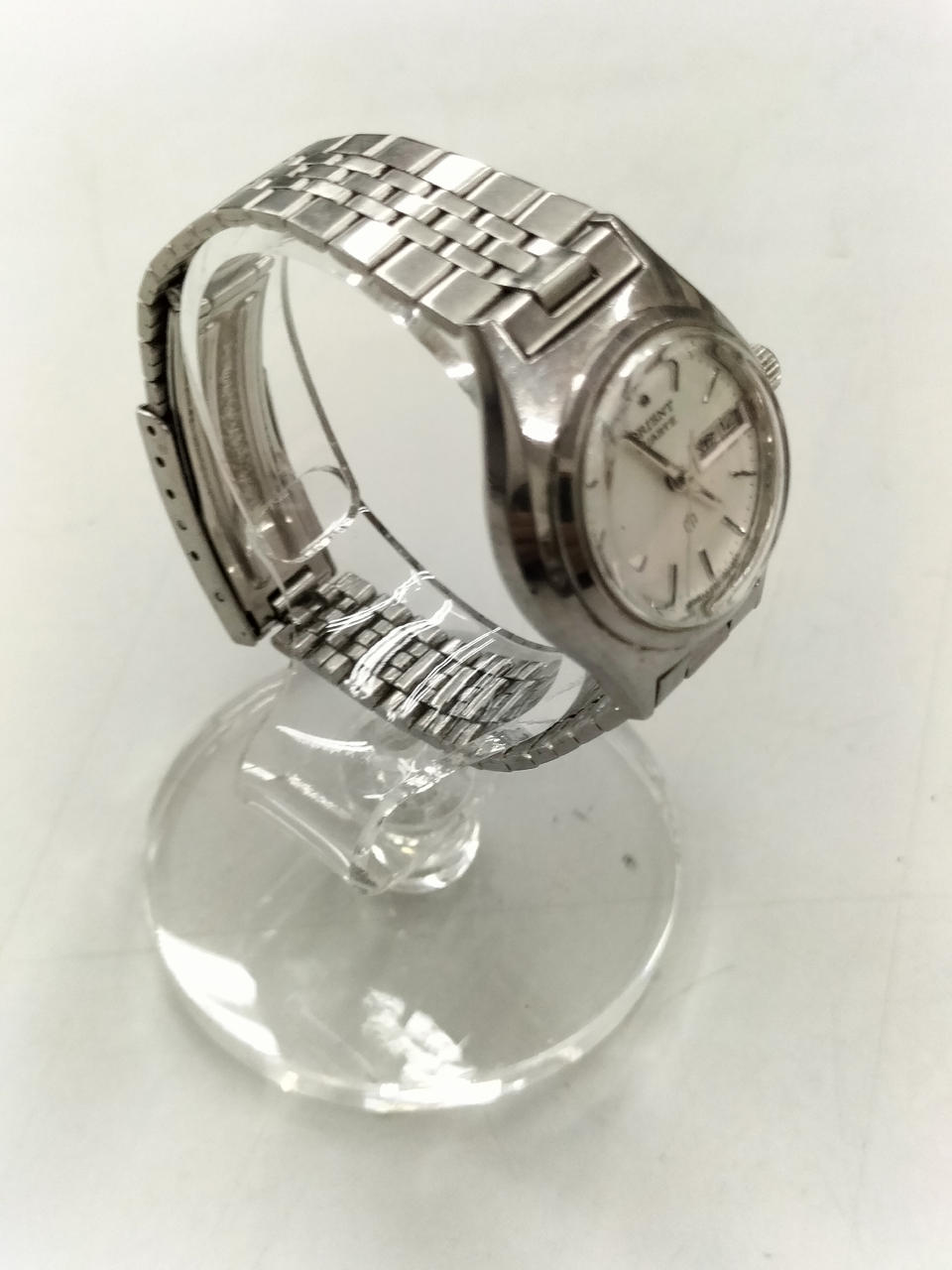 25/9電池交換済。人気のデイデイト表示。追加コマなし。約15cmと細いです。