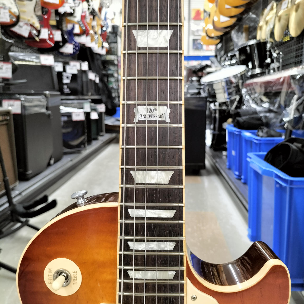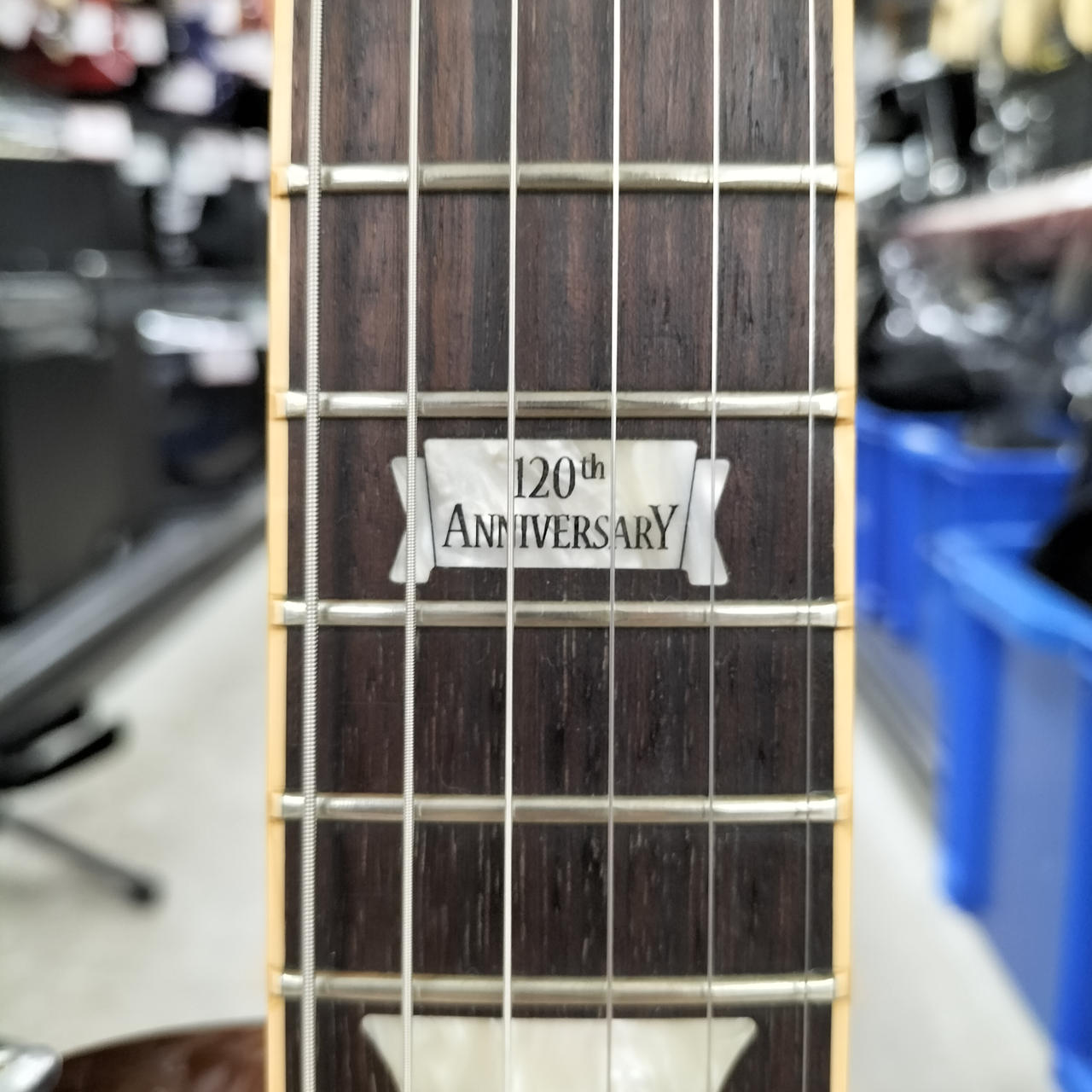 12フレットにギブソン社創立120周年記念 ”120th Anniversary” のインレイが入っている限定品です! |