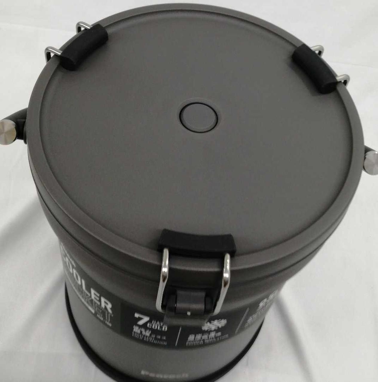 キャンプに必要な食材も1つで収まる、10Lサイズ♪(350ml缶なら最大16本収納可能)/ステンレス製で頑丈な設計なので、イスやテーブルとしても使えます! |