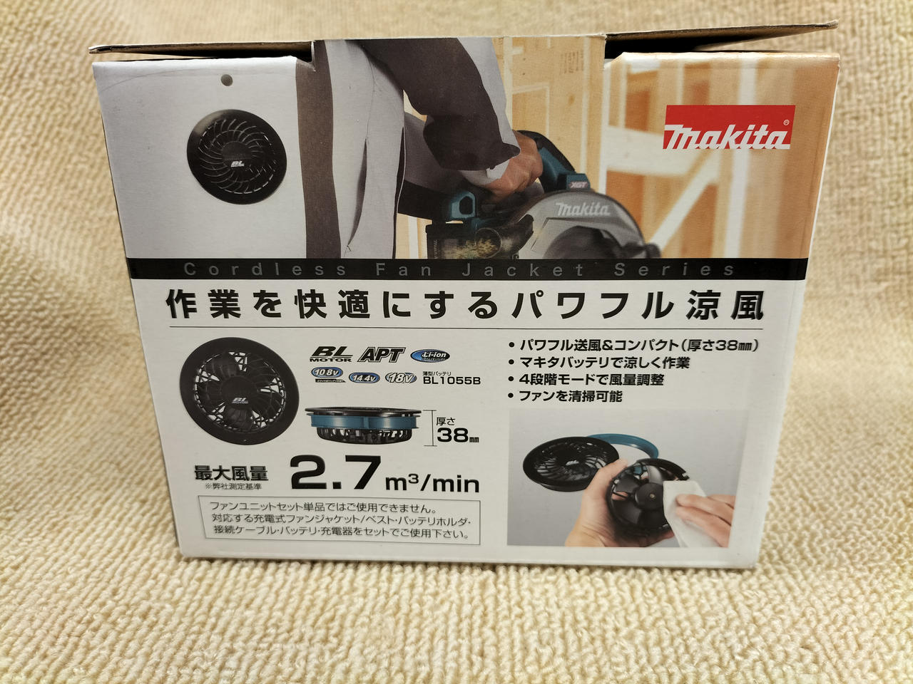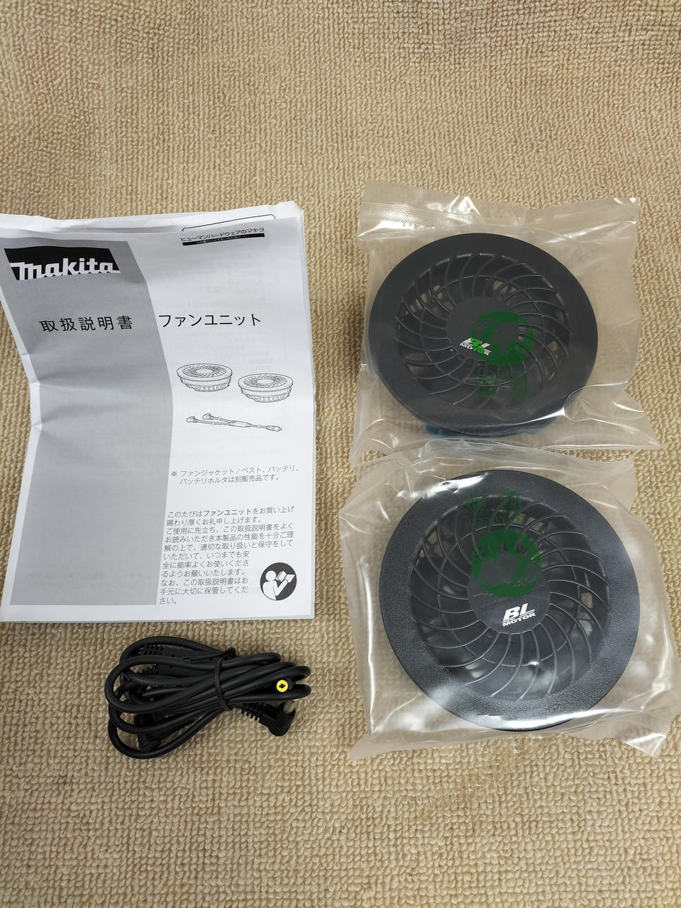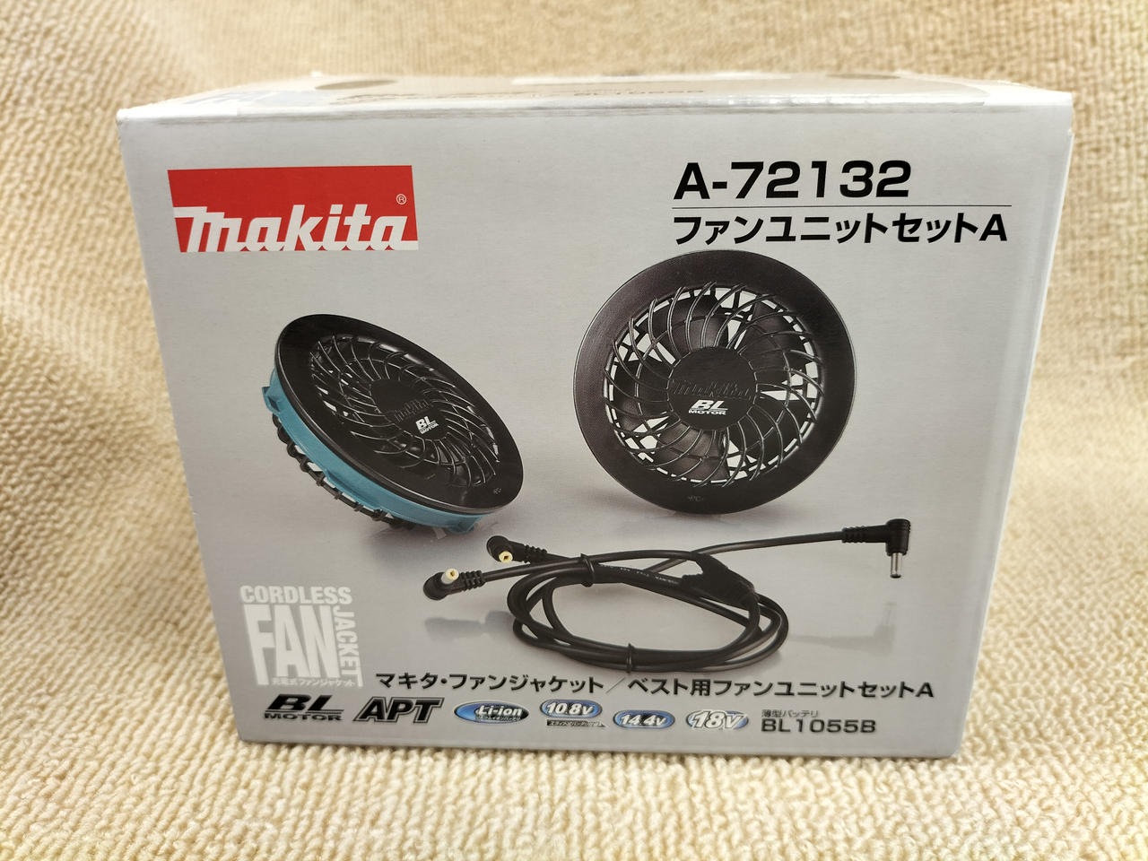 マキタの空調服用ファンとバッテリー(BL1055B)のセットです |