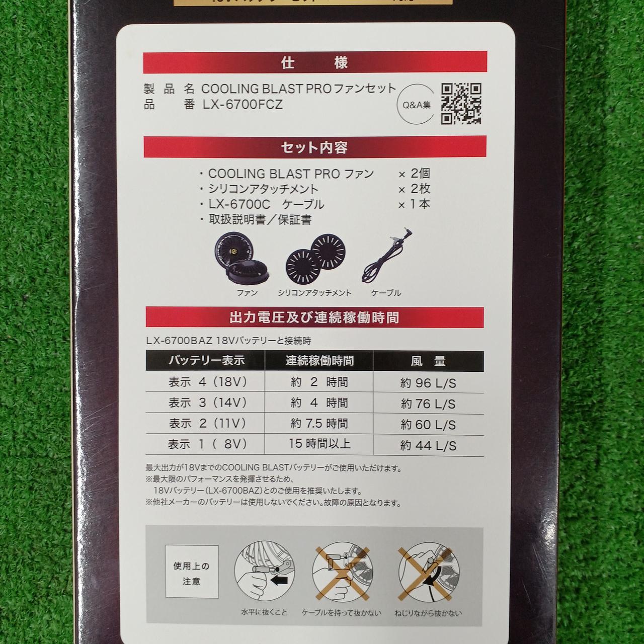 最大出力は18V(風量:96L)で約2時間連続稼働 |