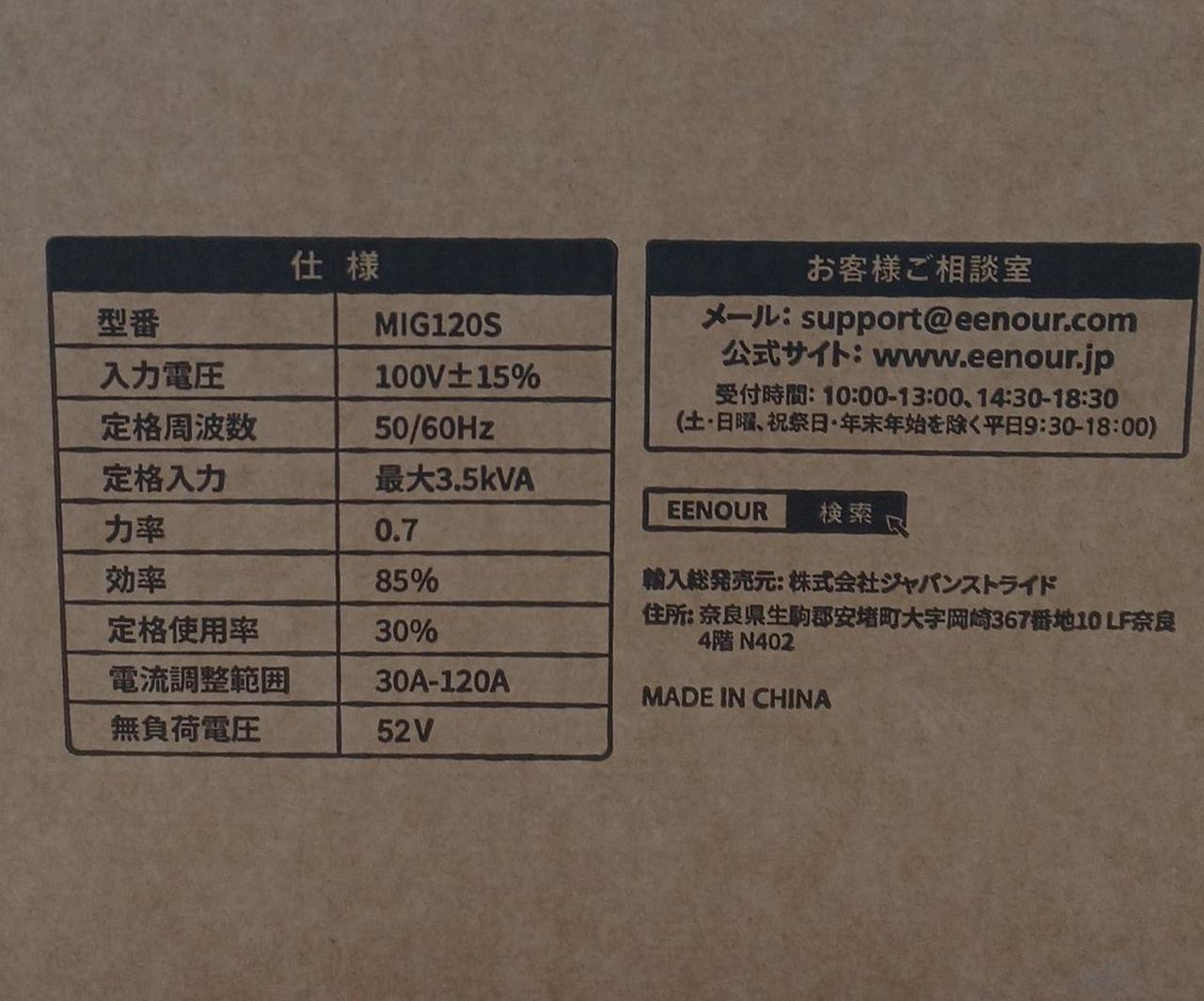 ・電流調整範囲:(MIG)30A~120A |