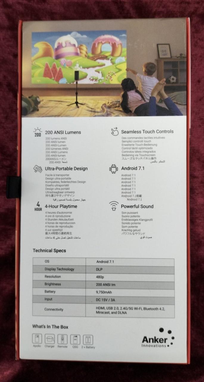 350ML缶サイズ&アルミニウムボディで、耐久性と持ち運びやすさを追求 200ANSIルーメンの明るさと854×480画素の高精細映像を最大100インチの大画面で鮮明に映し出します ※バッテリー容量保証なし 付属品:箱 クイックスタートガイド ACアダプタ リモコン |