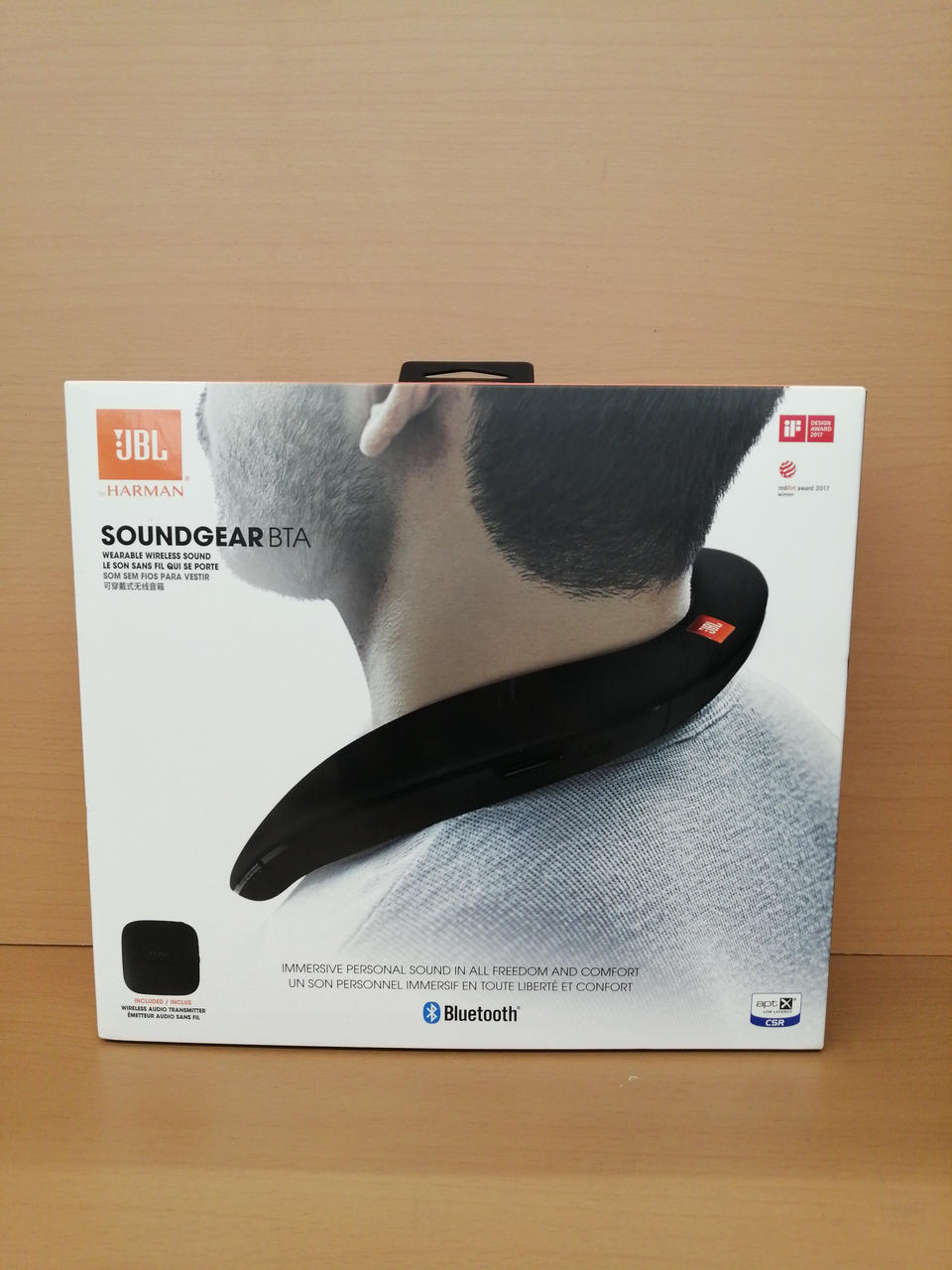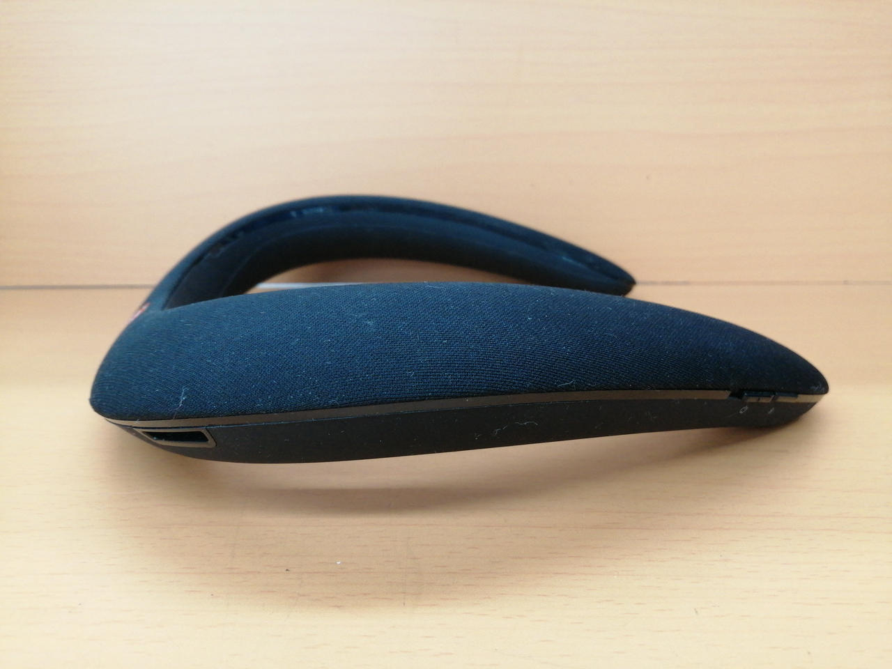 首にかけて音楽を楽しめるネックスピーカー。 |