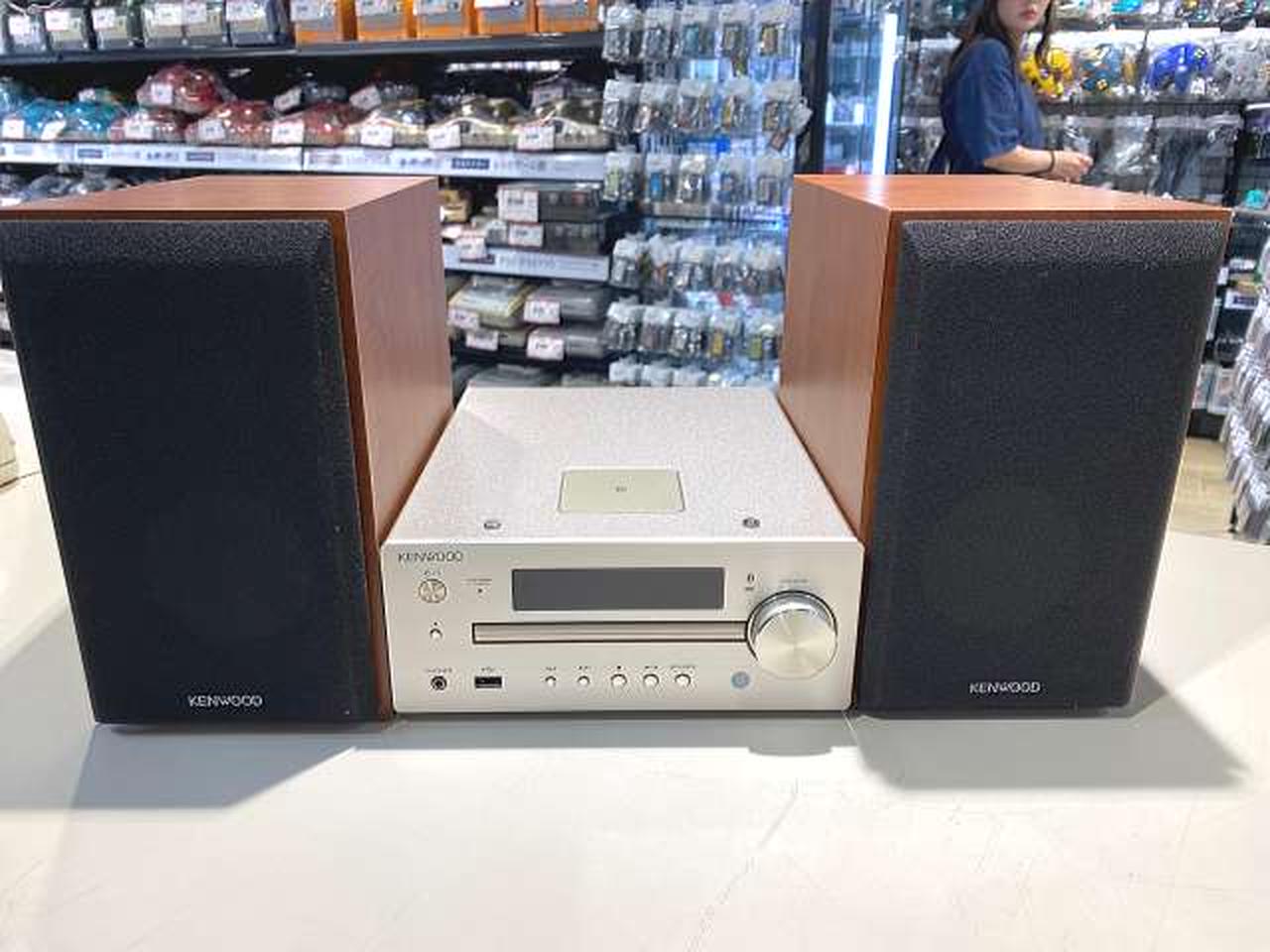 Bluetoothを搭載し、スマートフォンなどに入った音楽をワイヤレスで楽しむこともできるコンポ。対応メディア:CD/CD-R/RW 最大出力:50W ハイレゾ:○ |