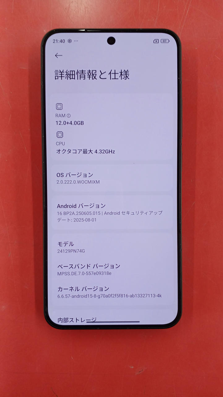 Snapdragon8Elite オクタコア/MAX4.32GHz |