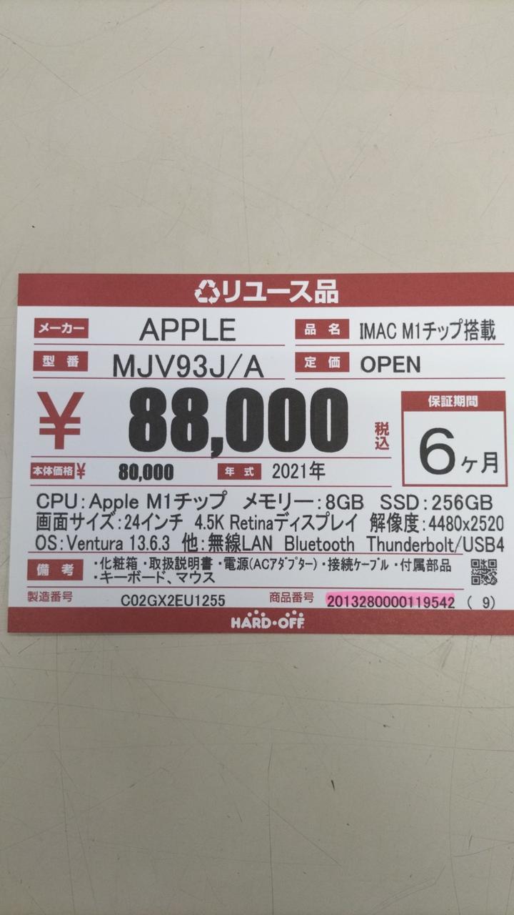 付属品:キーボード、マウス、化粧箱、取説、電源ケーブル |