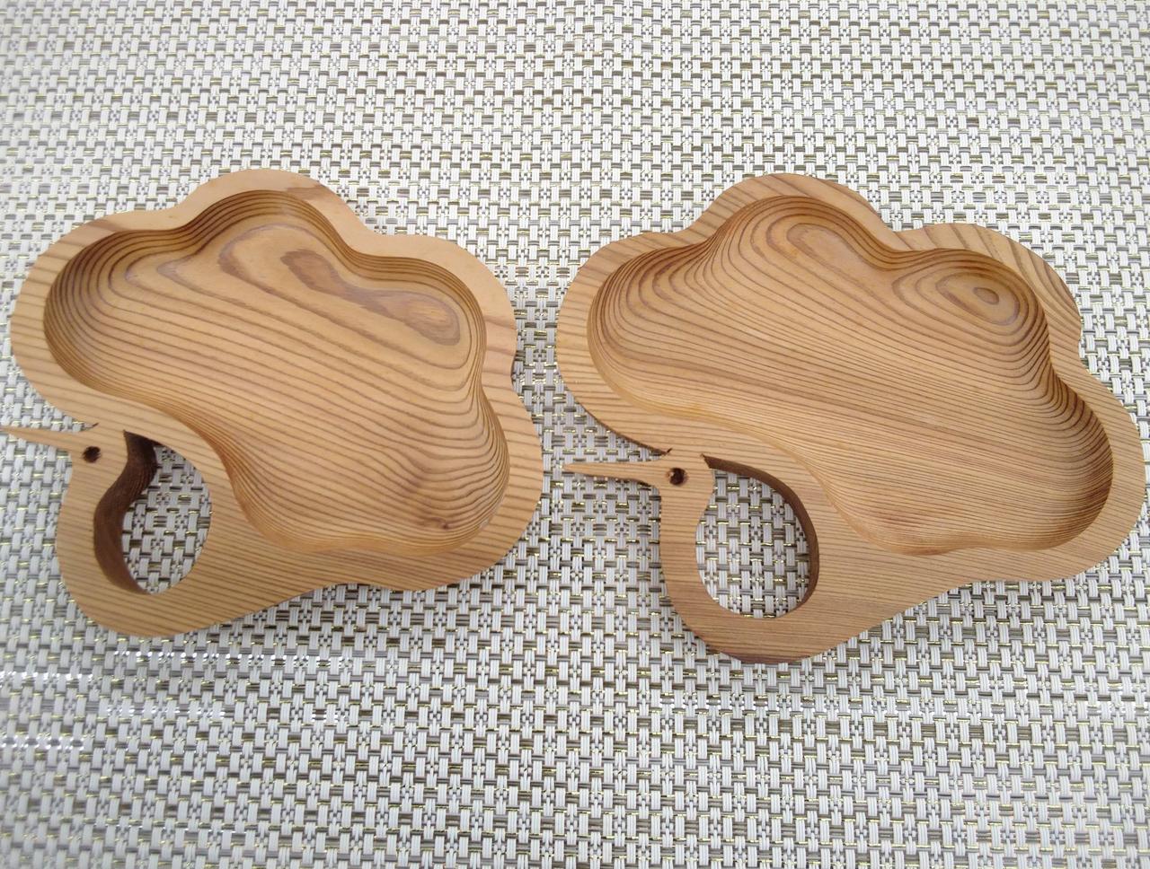 貴重な屋久杉で作られた鶴の銘々皿です。