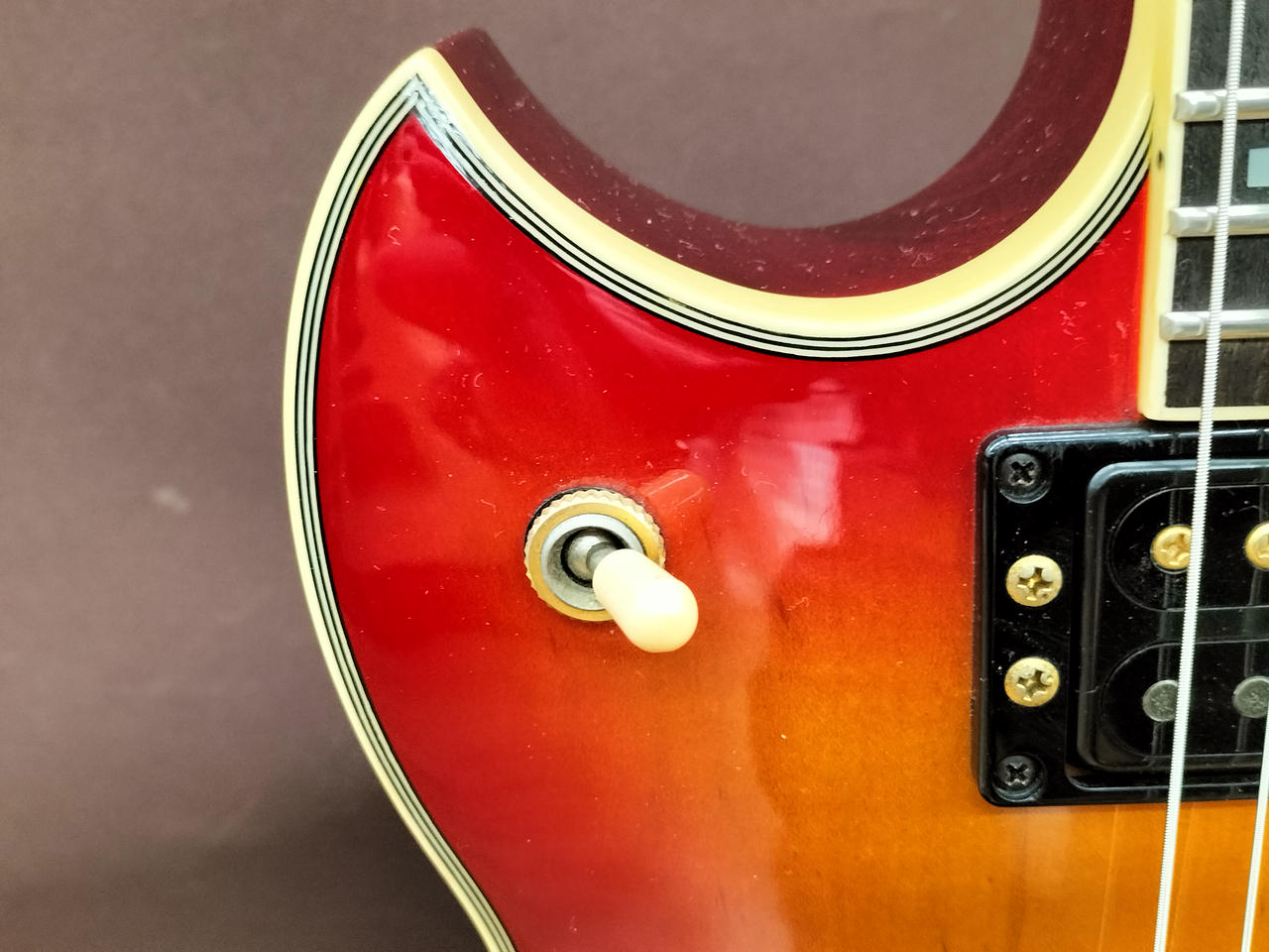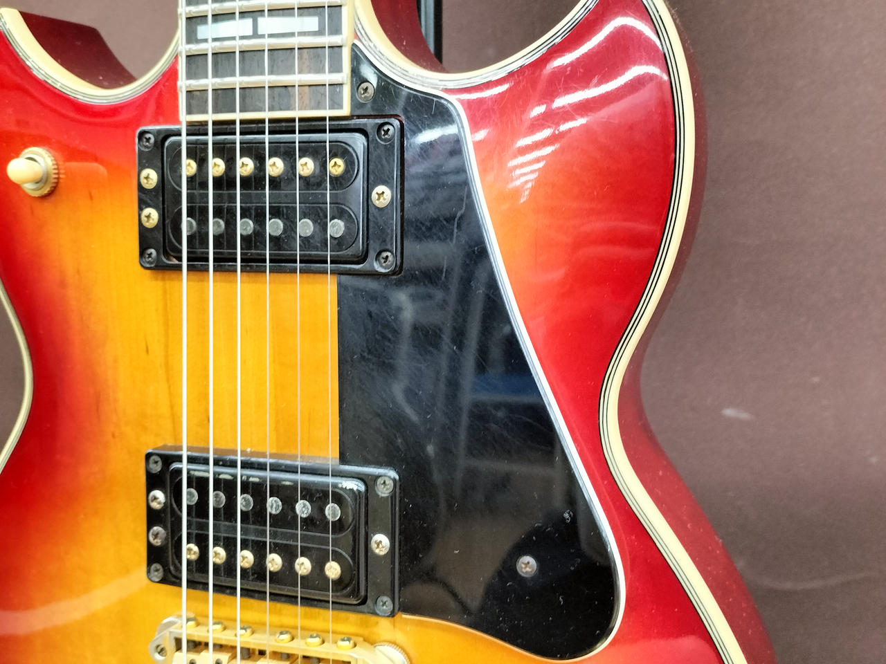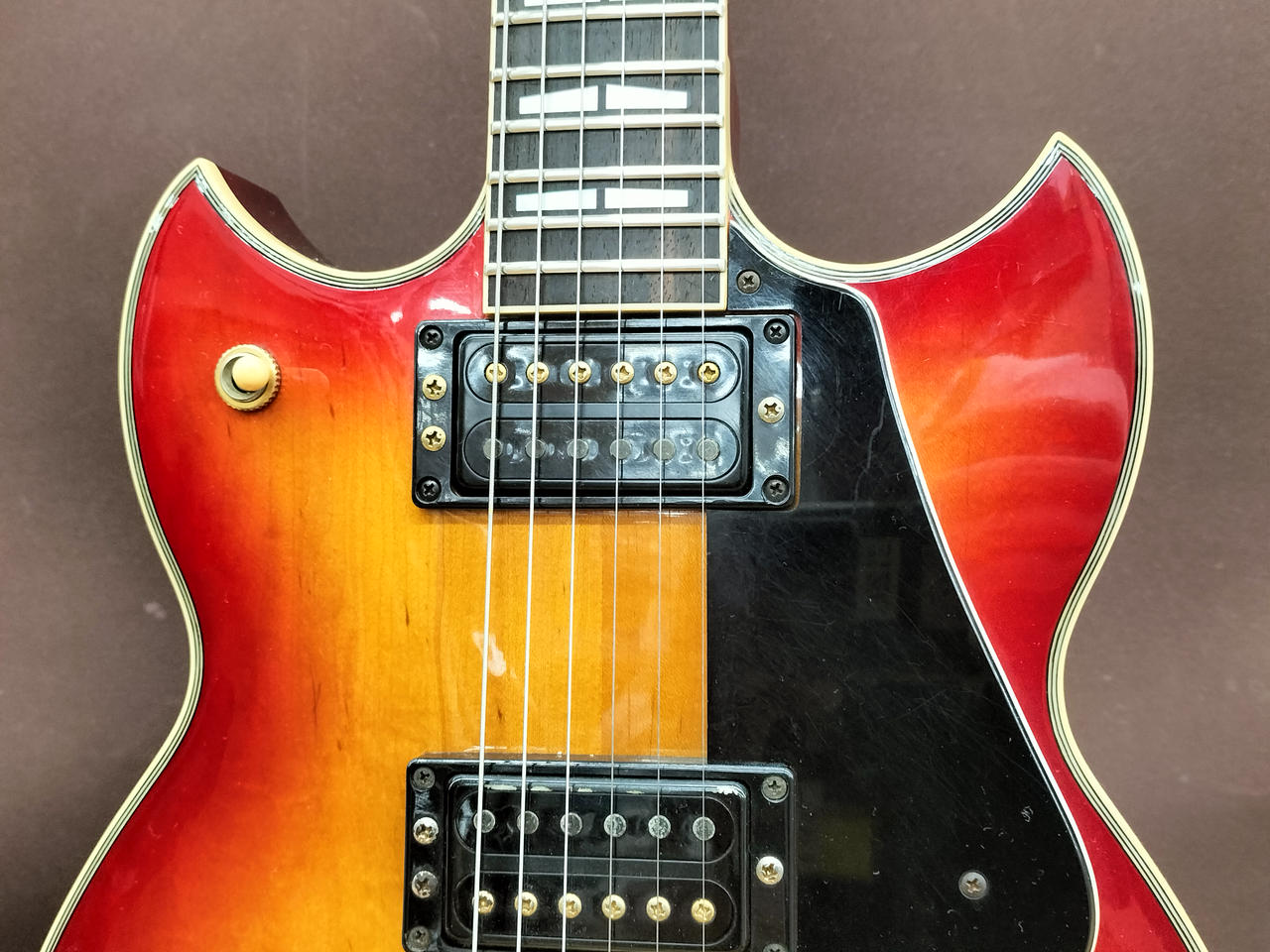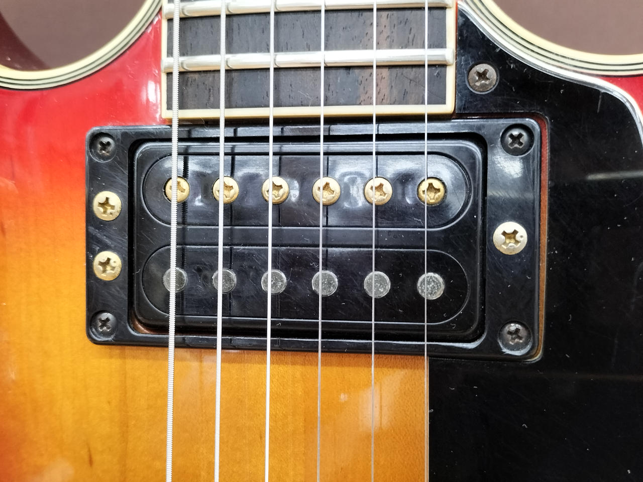 ※BIGSBYを搭載していたと思われる穴、へこみあります。ピックアップに「SG 2.8.27」スタンプあります。 |