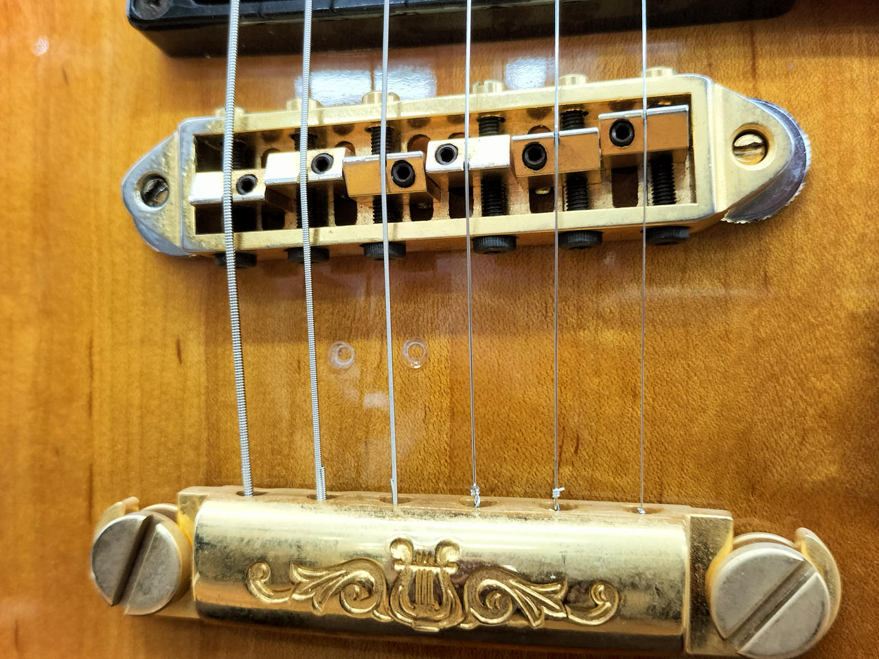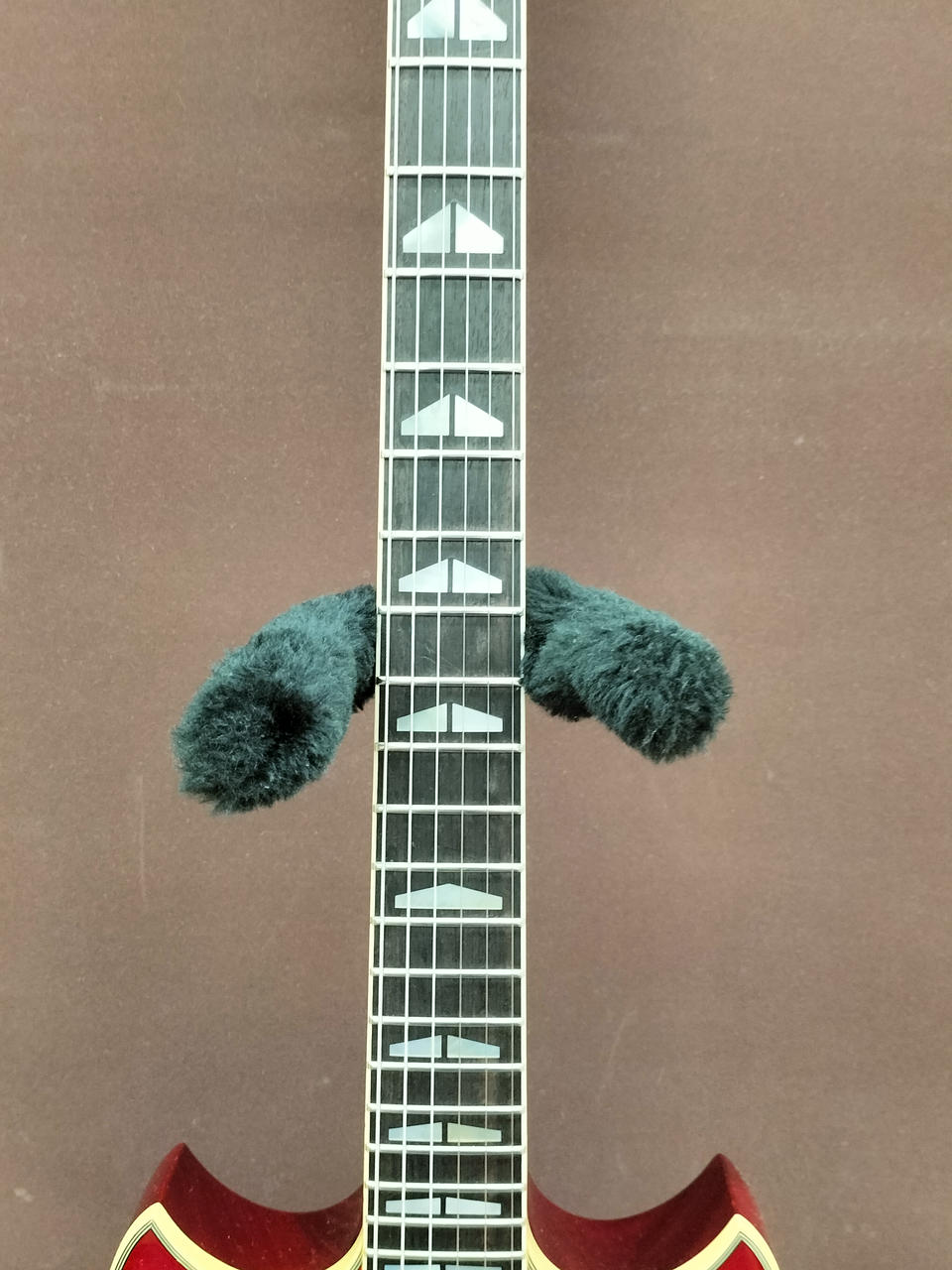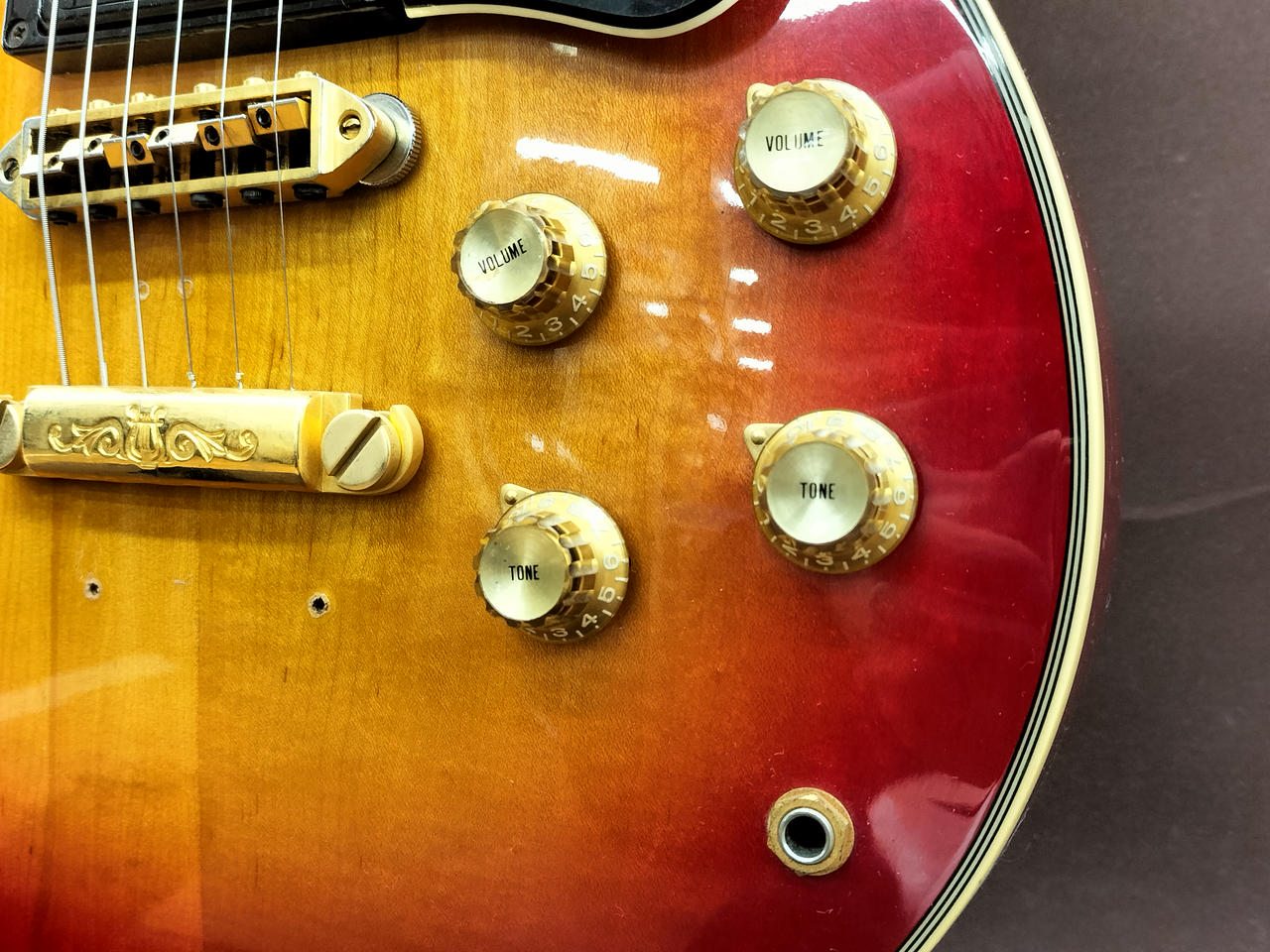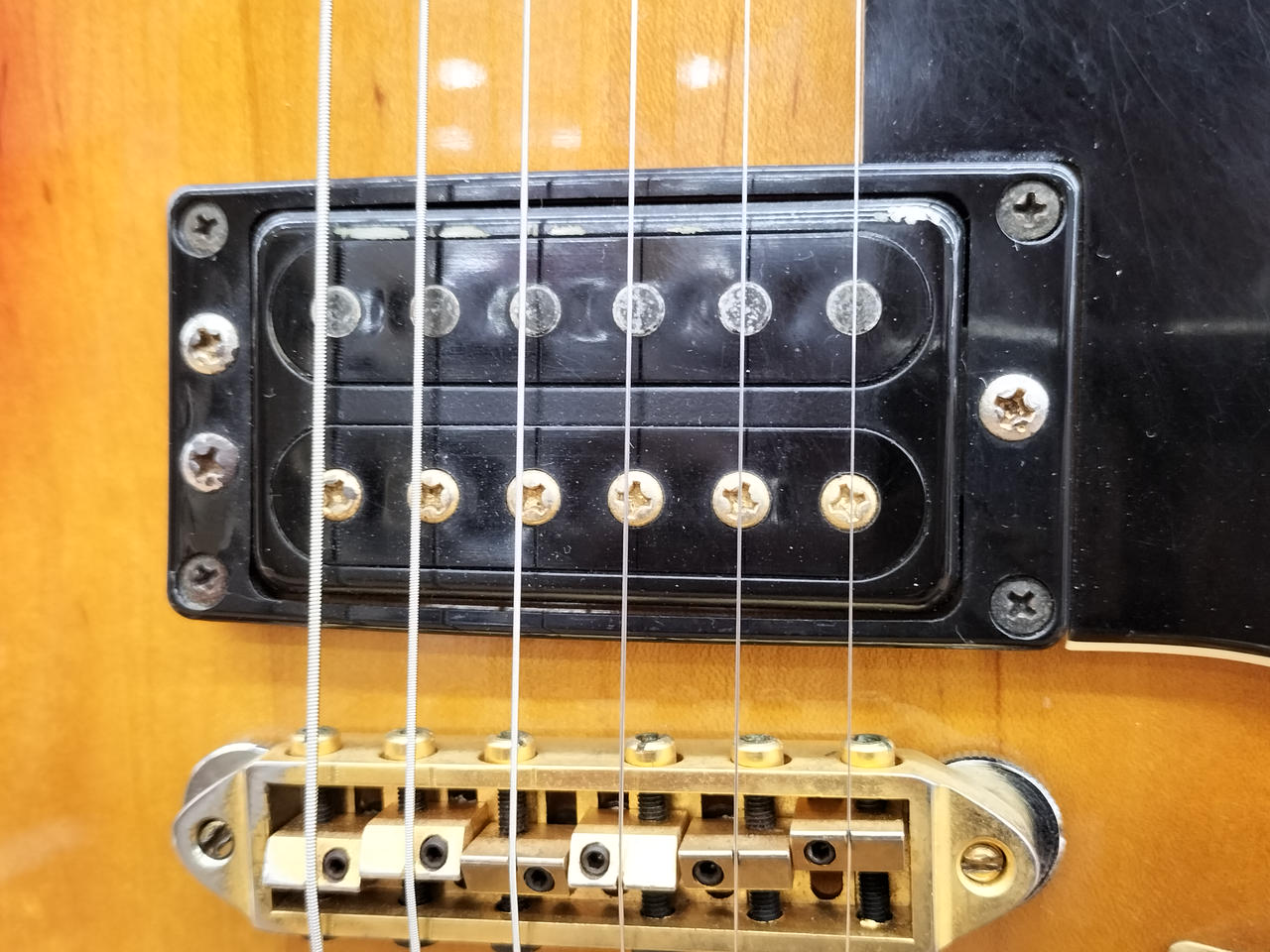 ※BIGSBYを搭載していたと思われる穴、へこみあります。ピックアップに「SG 2.8.27」スタンプあります。 |