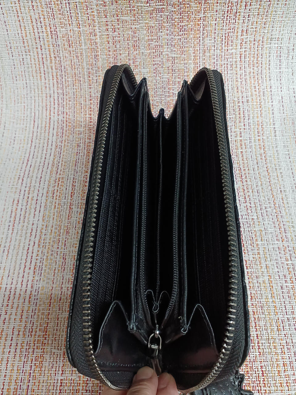 ゴジラの皮膚を型押しでイメージした高級牛革製 |