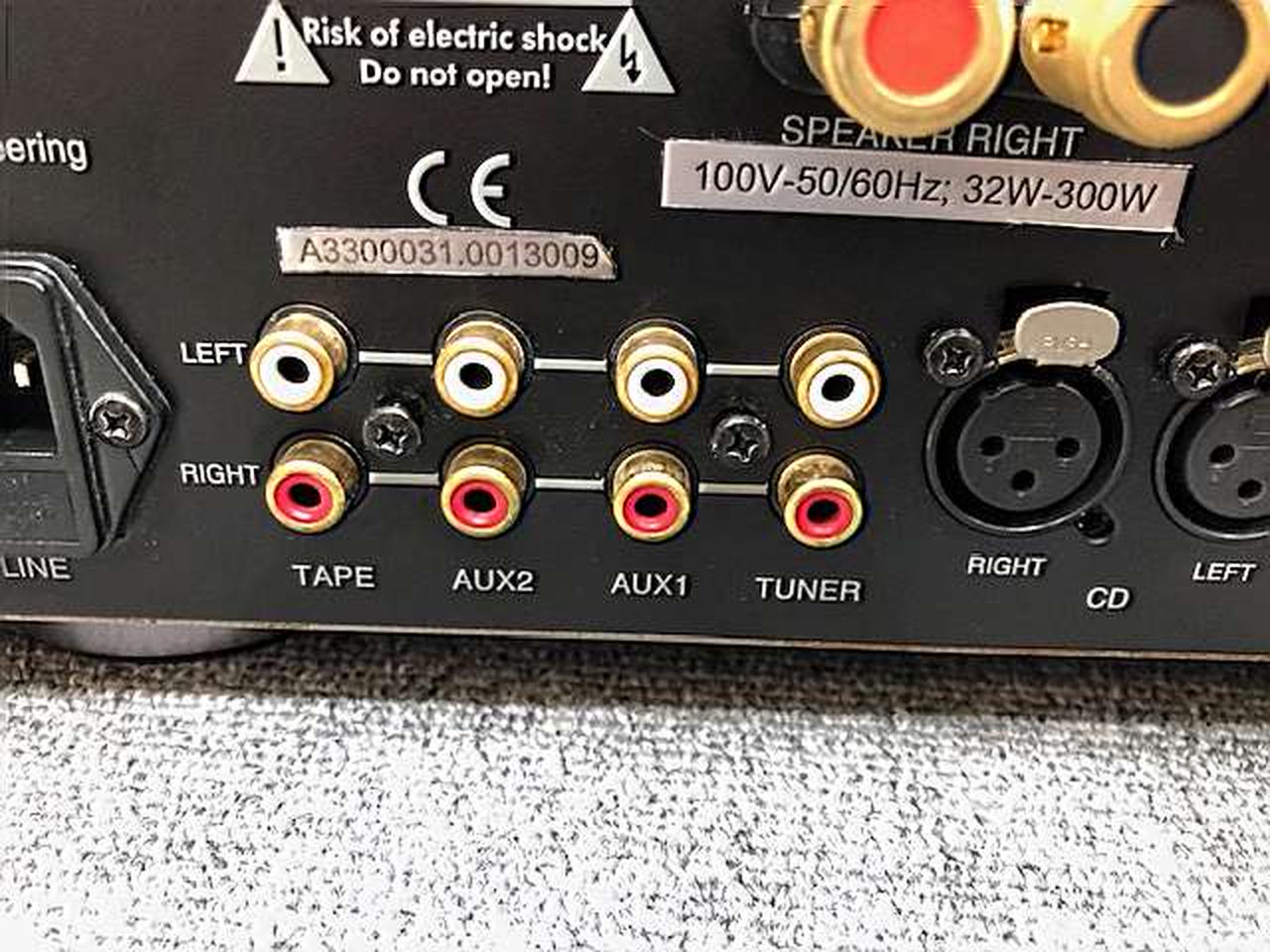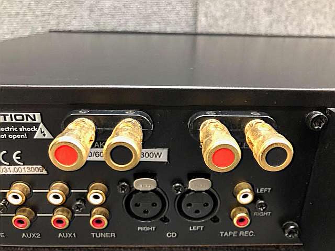 定格出力:64W+64W(8Ω) 入力:RCA/バランス×1系統 アルミ無垢のボリュームノブは高級感を感じさせます |